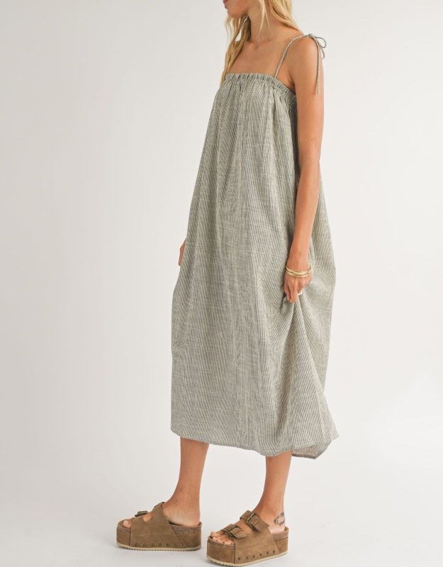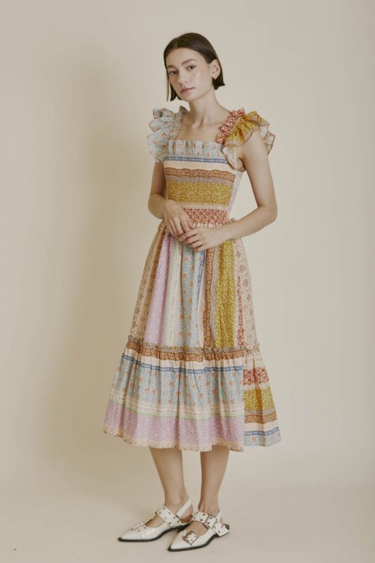 Flutter Sleeve Striped Midi Dress Style Measurements for Size S Designed in USA – Body Length: 35 in – Bust Width: