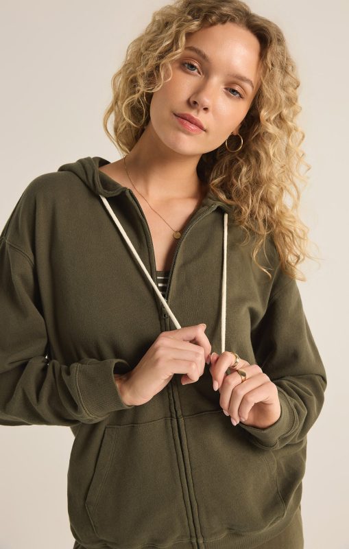 Whether you’re headed to the studio or running around, this cotton fleece hoodie is essential. Zip yourself into comfort that