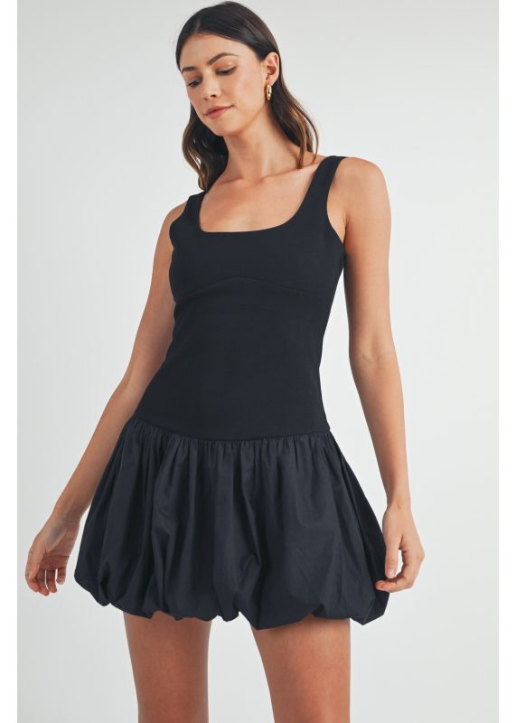 Scoop Neckline Sleeveless Bubble Hem Mini Dress