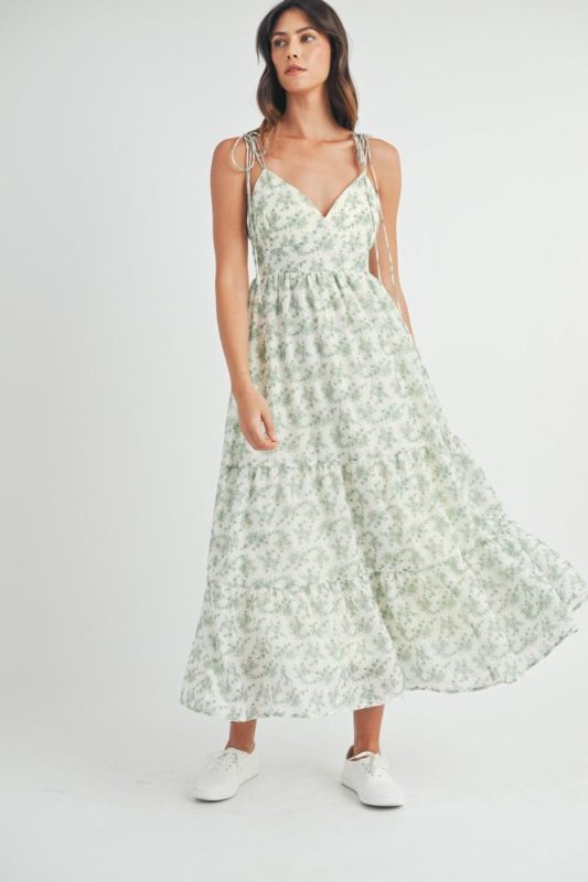 Floral print double self tie spaghetti strap tiered midi dress. Lining Midi Dress Fabric Contents: 80% POLYESTER 20% NYLON