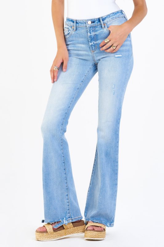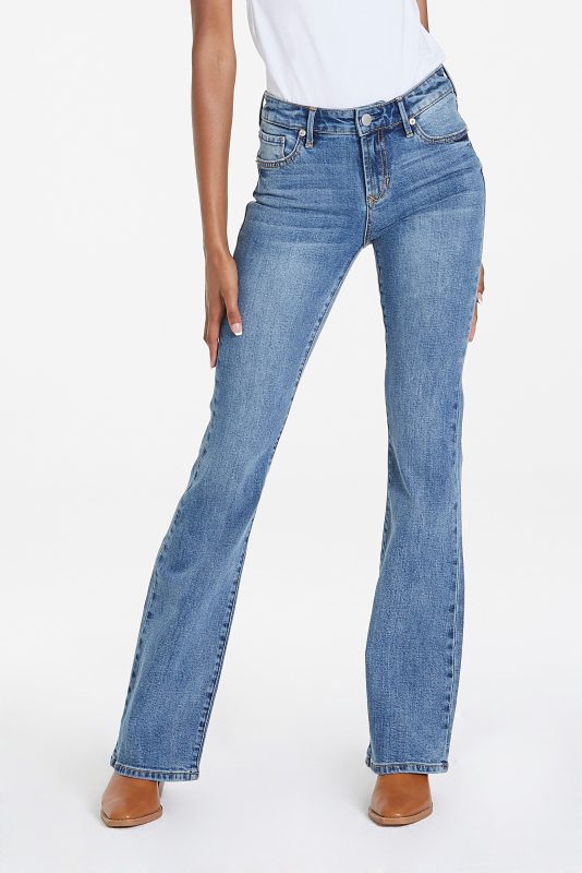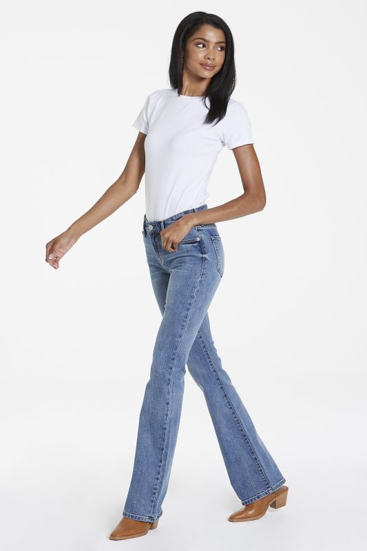 High rise flare leg jeans. It’s the lovable fit that sits slightly lower on the waist and fitted skinny in