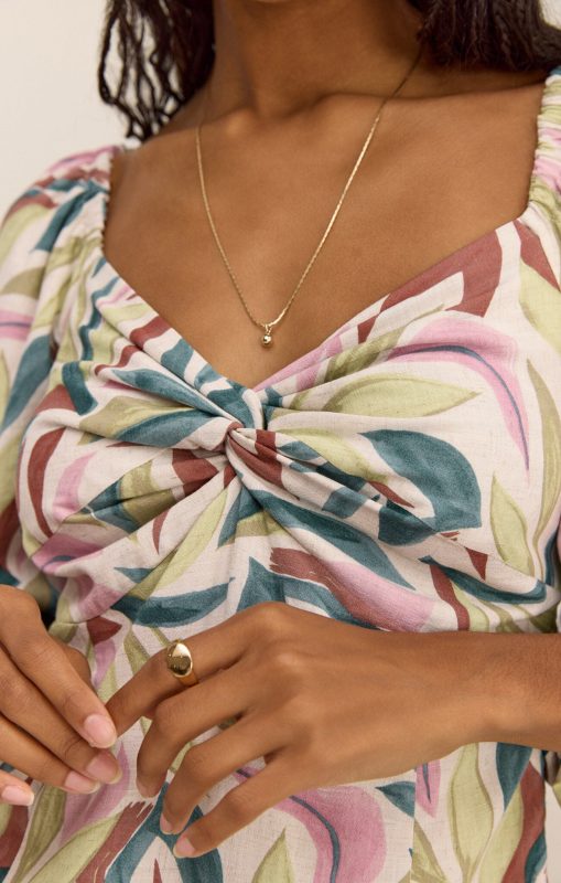 The easiest dress you’ll wear this season features a flattering ruched neckline and fun criss cross strap design. You’ll flow