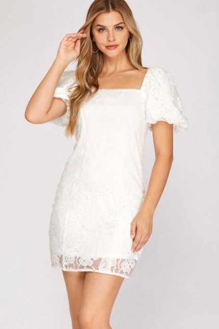 Bubble Short Sleeve Organza Mini Dress Fabric Contents: S:100%POLYESTER L:100%POLYESTER WOVEN DRESS MODEL IS 5’8″