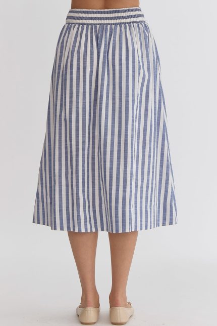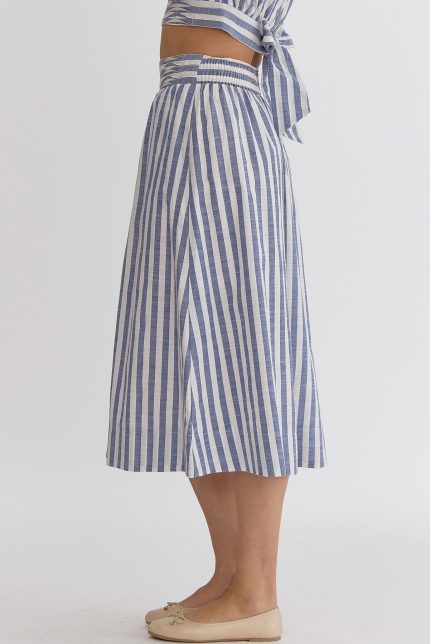 Striped Solid High-Waisted Midi Skirt