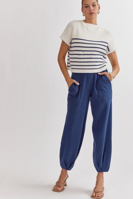 Solid Knitted High Waisted Joggers