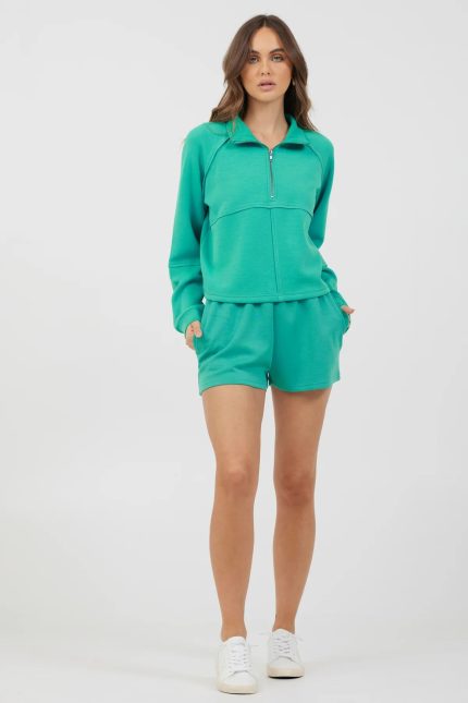 Vallie Short High rise Patch pocket detailing Tailored look Inseam length 2 1/2″ Fitted Rayon/Linen: 86% Rayon, 14% Linen