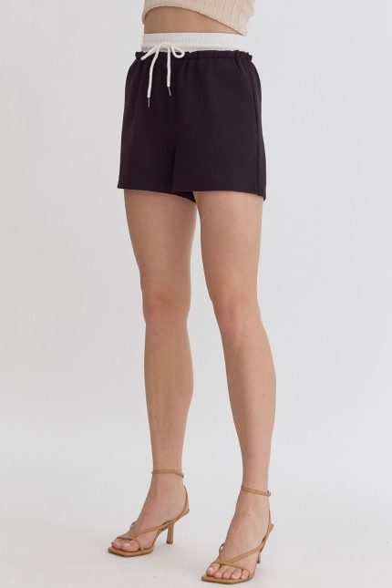 Two Tone Knit Shorts MODEL IS WEARING A SIZE SMALL / HEIGHT: 5'8"* Top & Cardigan Sold Separately as a