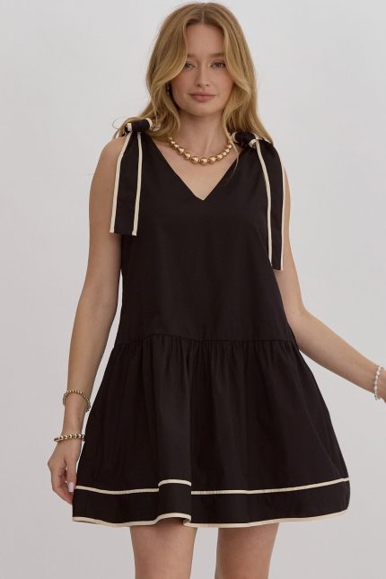 V-Neck Sleeveless Self Tie Mini Dress