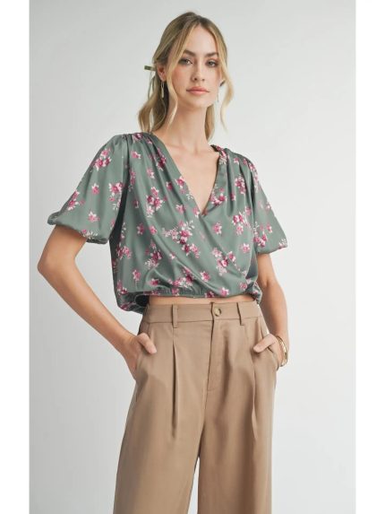 Hostess Surplice Bubble Slv Top  Fabric Contents: SELF: 98% POLYESTER 2% SPANDEX