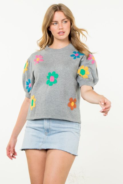 Short Sleeve Bow Pattern Knit Top Style Measurements for Size S – Body Length: 21 in – Bust Width: 35