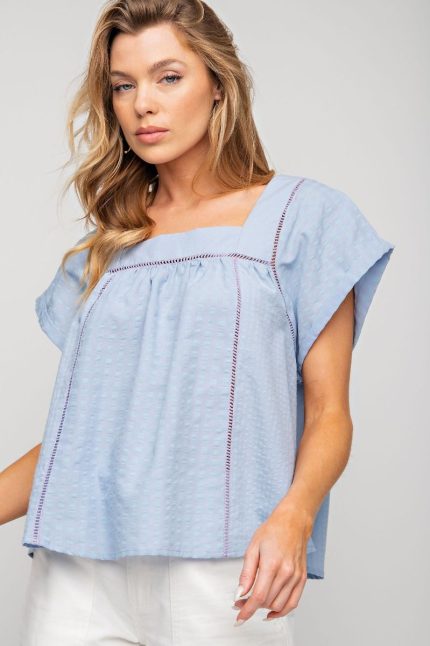 Half Sleeve Poly Crepe Special Smocking Detailing Babydoll Top Square Neck Self Tie Back Loose and Relaxed Fit Small Measurements