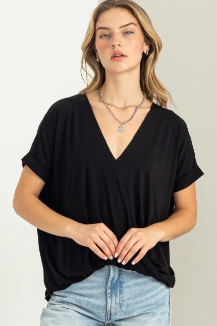 Forever our surplice oversized top is just what you need. This is a mush have top that features a v-neckline,