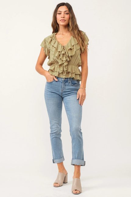Blaire Mid Rise Cuffed Slim Straight Jeans