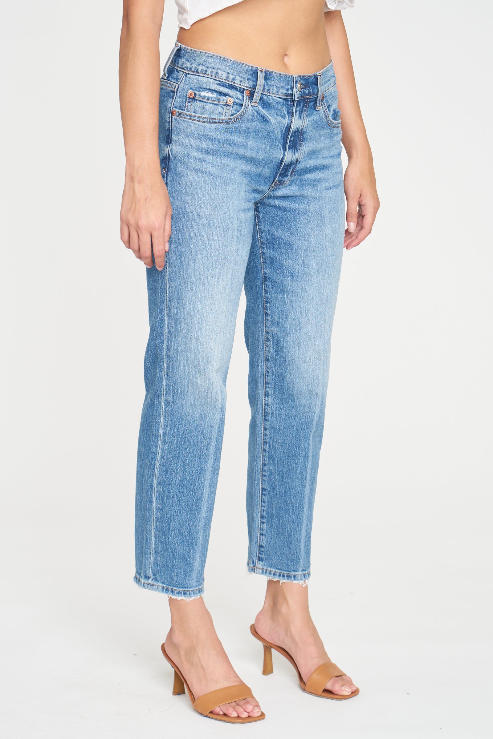 Best described as Wrangler’s Dad jean, their mid-vintage straight jean is a mid-rise straight jean, with a straight top block and straight leg profile. Designed to be worn slouched and relaxed, this fit is reminiscent of a true vintage jean. Made in a washed, soft but rigid denim that becomes more unique with every wash.