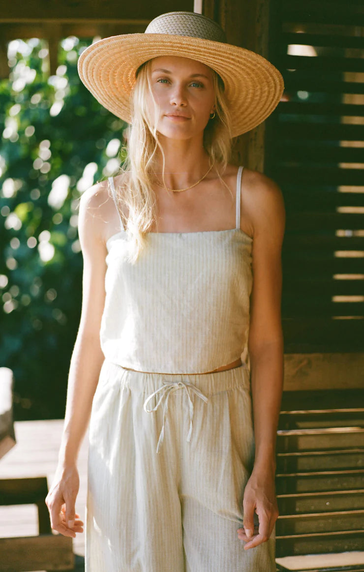 This striped linen tank is your elevated option for warm, sunny days. Slightly cropped, it hits above the waist, features a flattering straight neckline and will get all the attention.