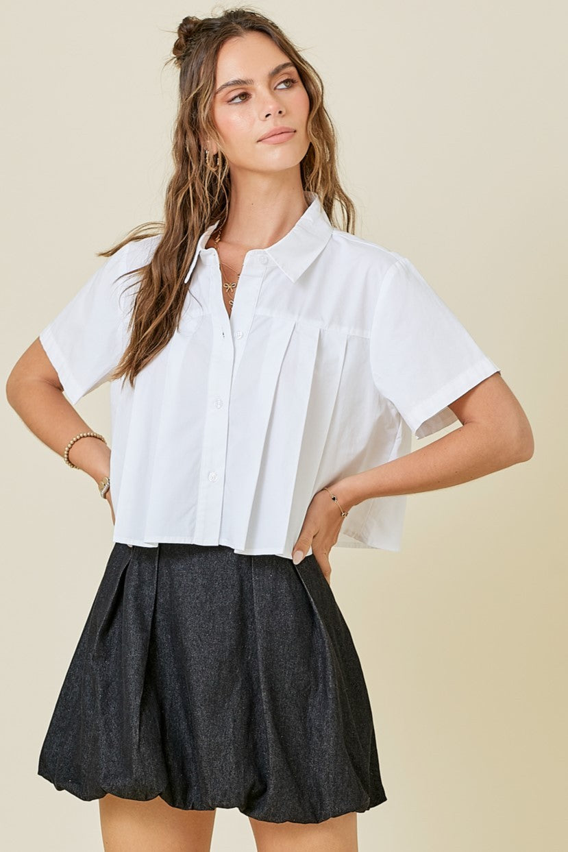 SKU: N/A Category: MINI Tags: bottom, Bottoms, bubble hem, Bubble hem skirt, Mini Skirts, pleat detail, pleat detail skirt, skirts