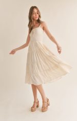 Strap tank midi dress with side vents, squared front & back elastic top finished with multi-tiered skirt in ombre wash.