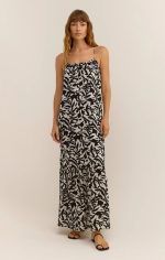 The easiest dress you’ll wear this season features a flattering ruched neckline and fun criss cross strap design. You’ll flow through your day in this tropical print midi, that we also love as a great beach coverup.