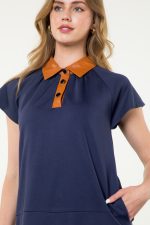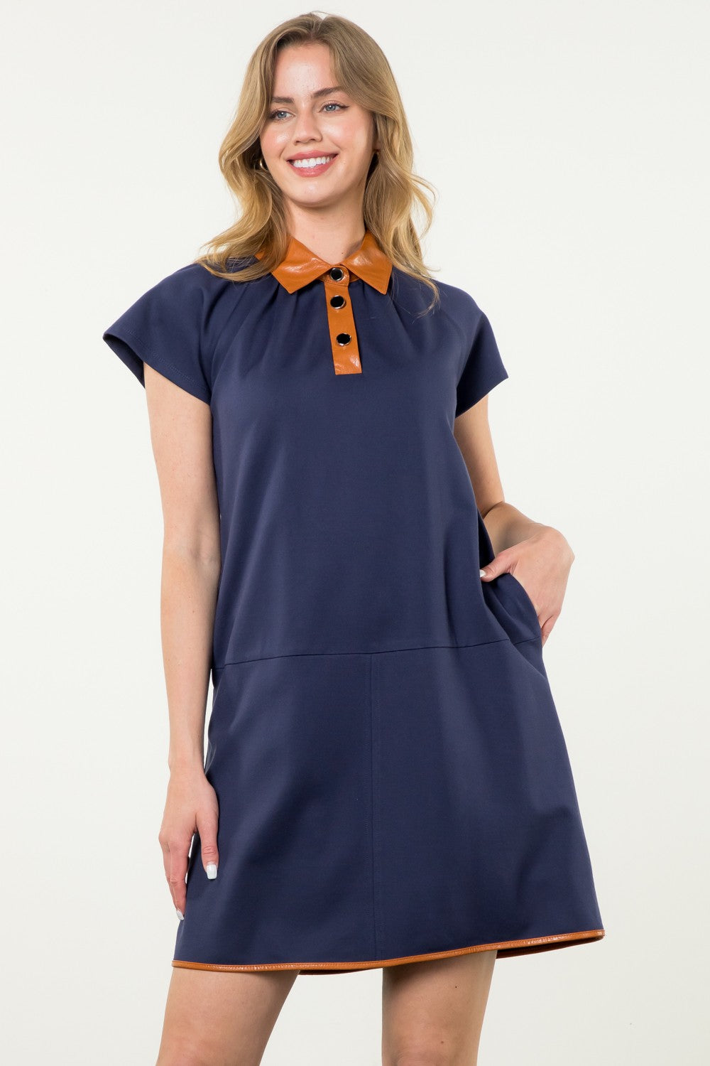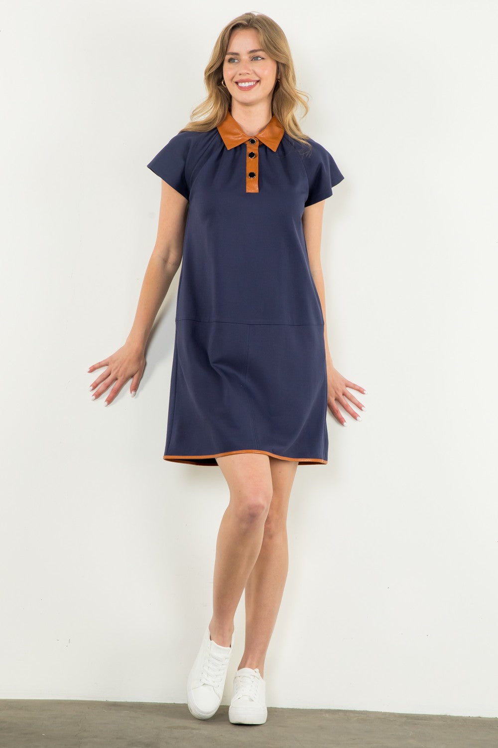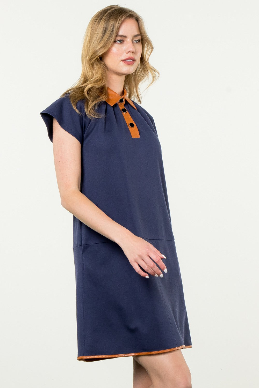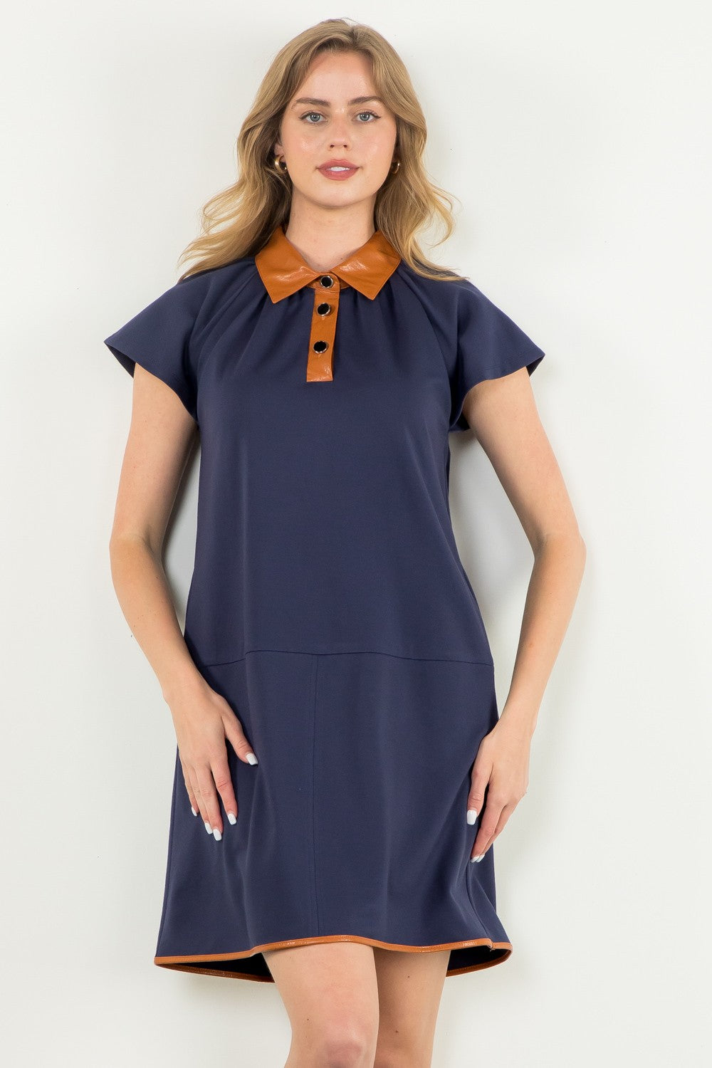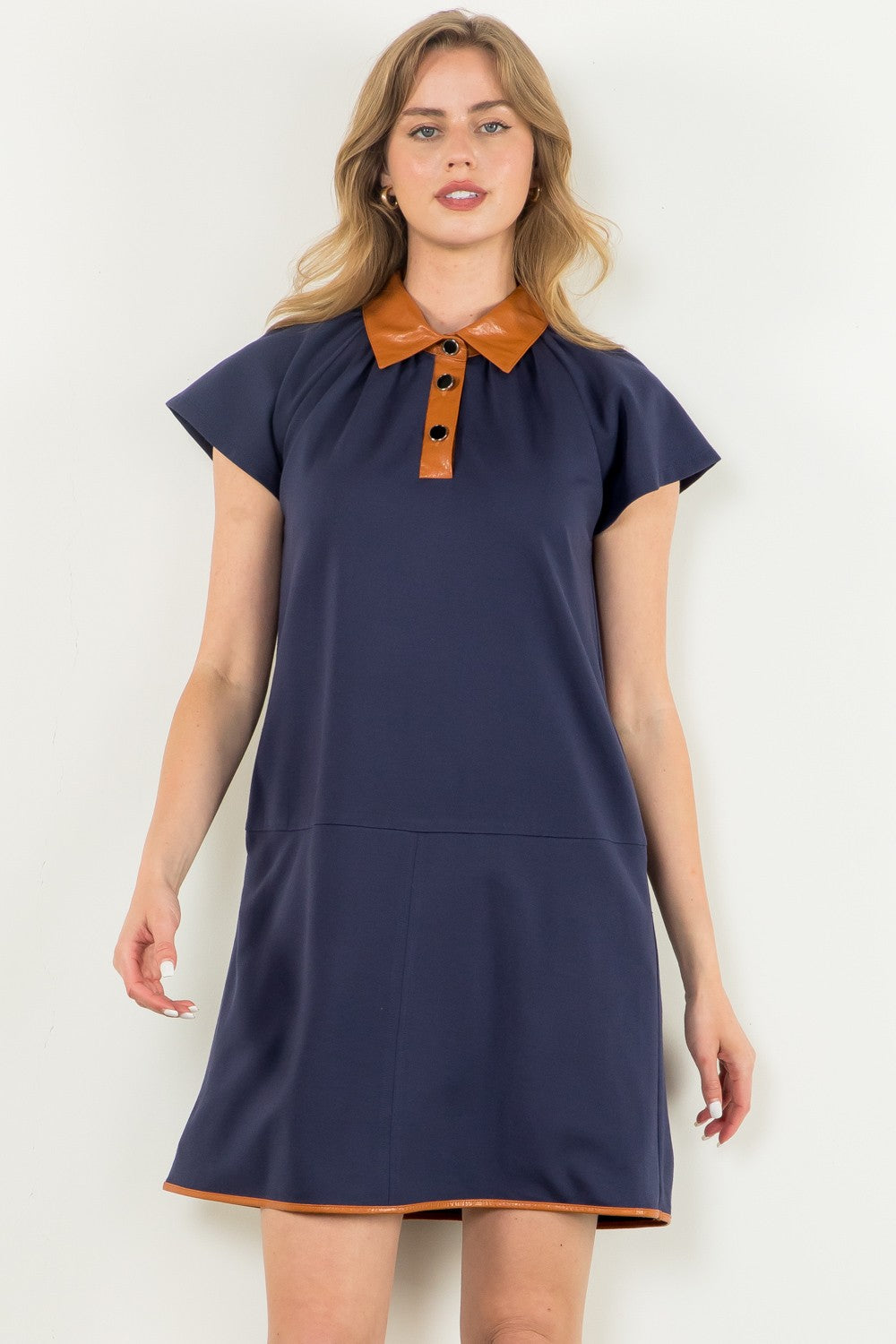 Tags: Collared Short Sleeve Midi Dress, dress, Dresses, leather collar and detail, midi, Midi Dress, short sleeeve, short sleeve
