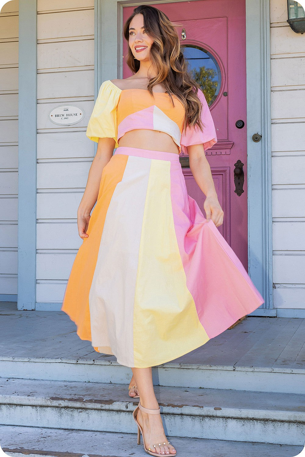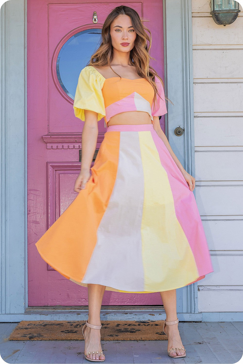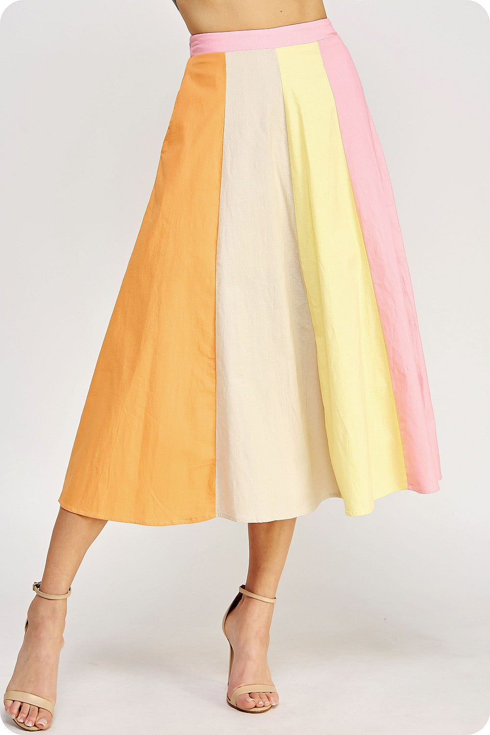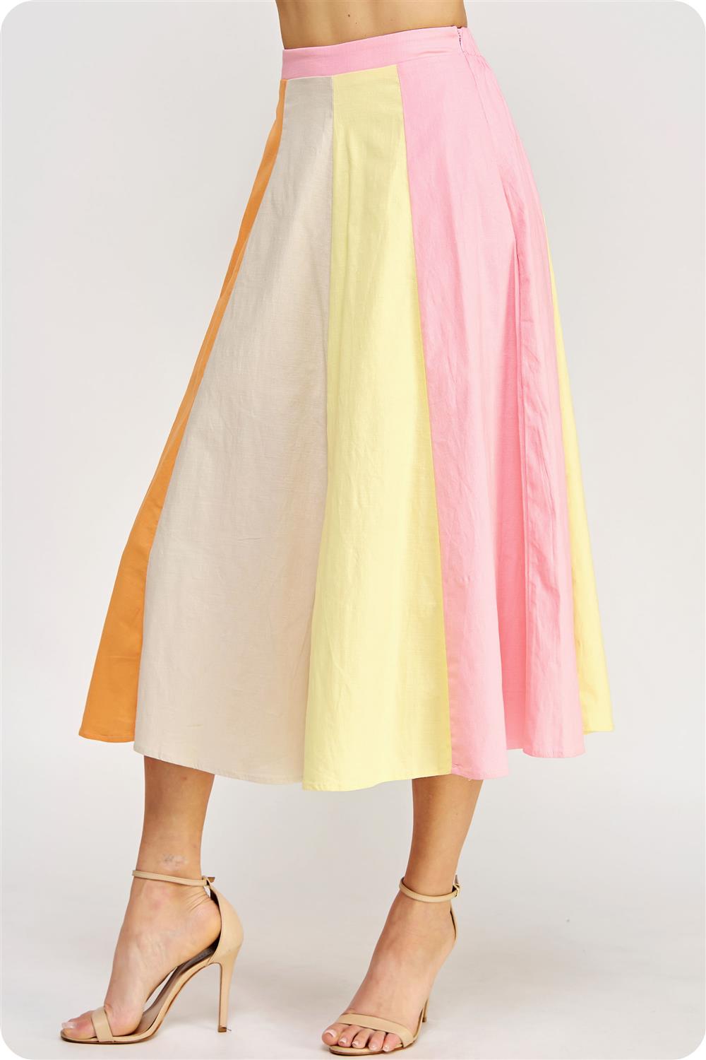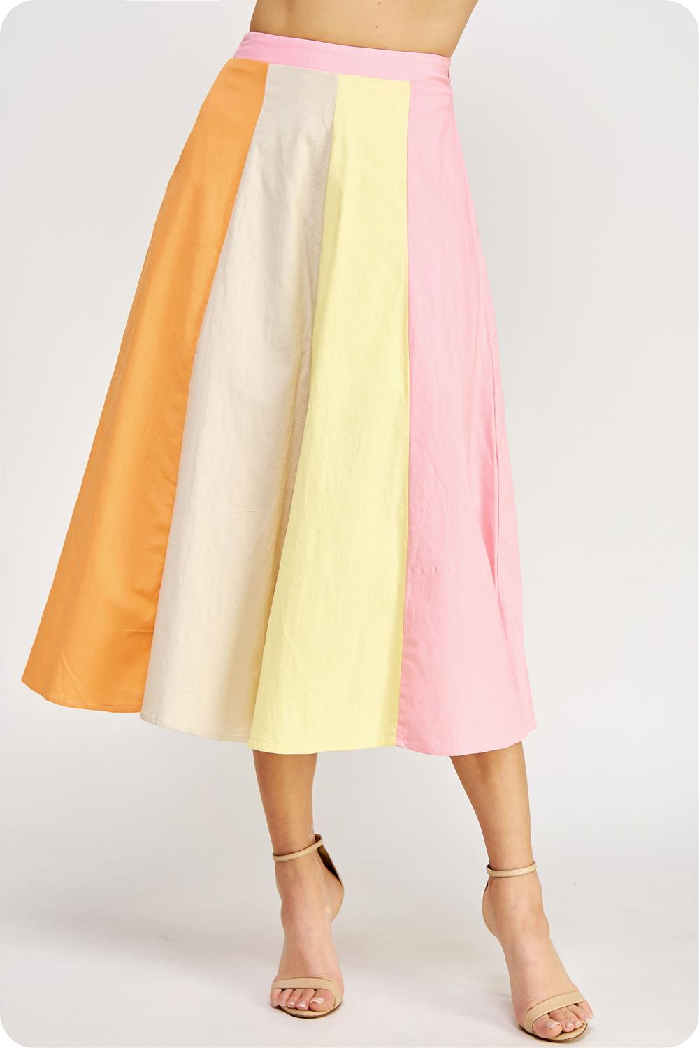 Color-blocked midi skirt in stretch cotton fabric.