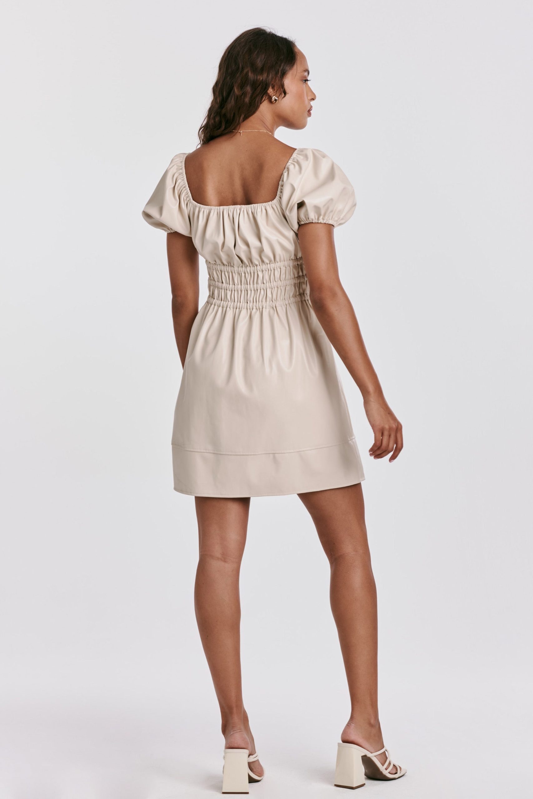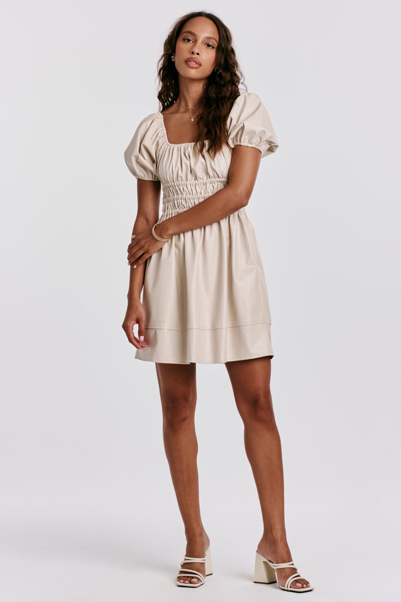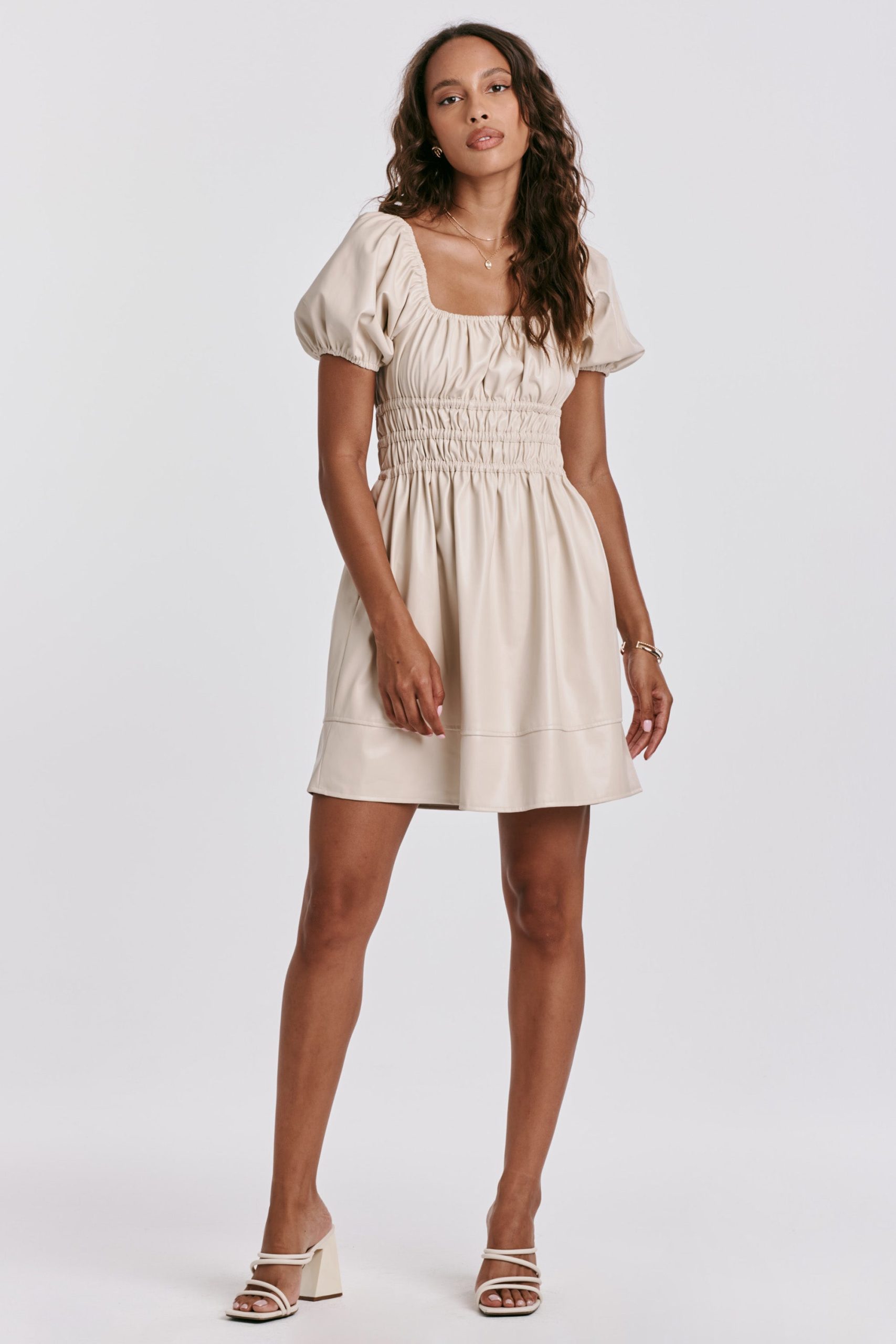 Puff sleeve midi dress finish in vegan leather, elastic at square neck, cuffs & empire waist. Solid color pleather on standard fit. Check you out! You are ready to rock any occasion with the latest leisure trends…
