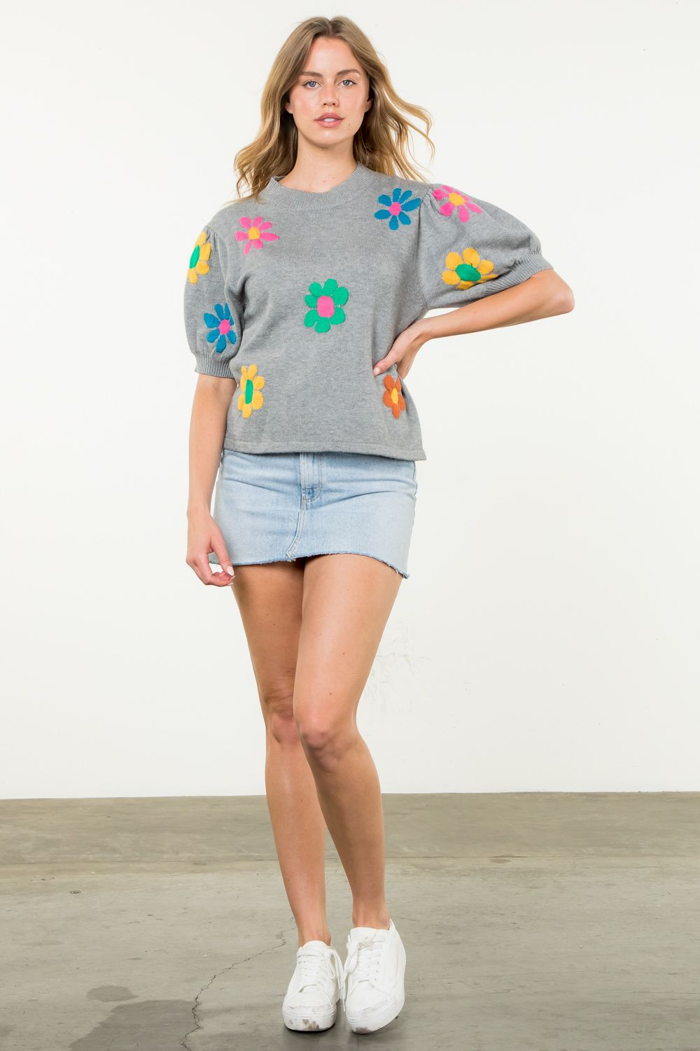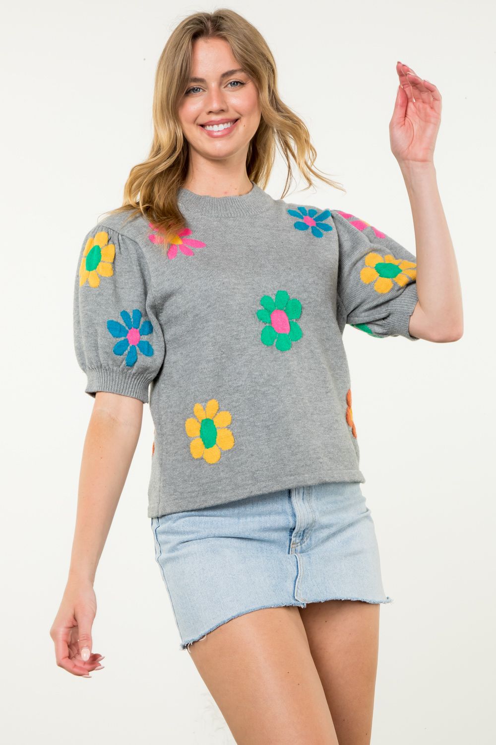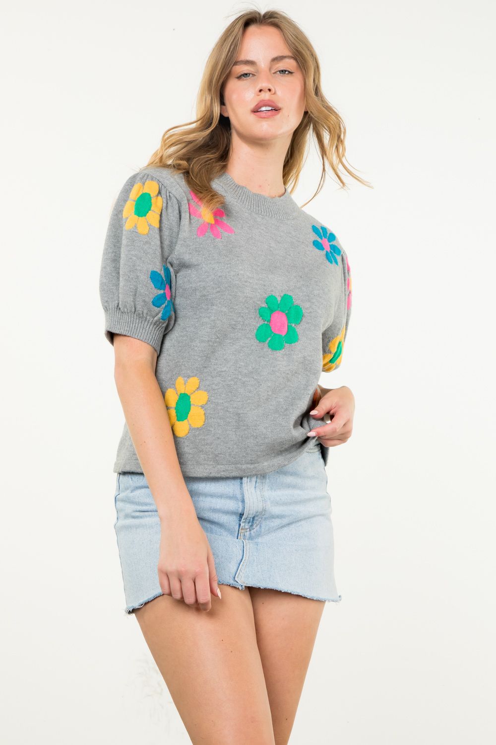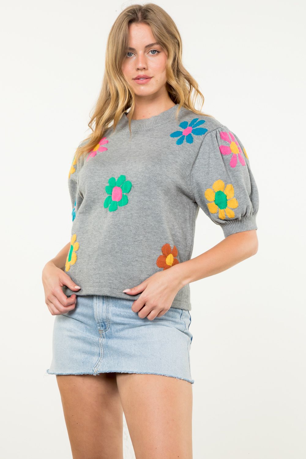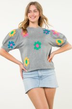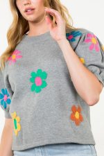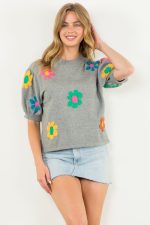 SKU: N/A Category: TOPS Tags: All Tops, flower knit, round neck, Round neck sweater, round neck top, round neckline, round neckline sweater, round neckline top, short sleeeve, short sleeve, Tops