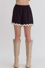 SKU: N/A Category: SHORTS Tags: bottom, Bottoms, elastic waistband, high waisted, High waisted shorts, lightweight, lined, lined shorts, Non-sheer, pockets at side, Ric rac trim detail, shorts