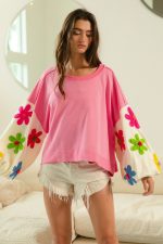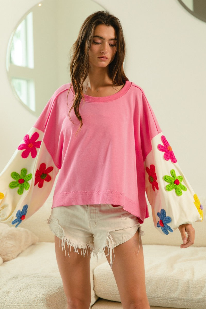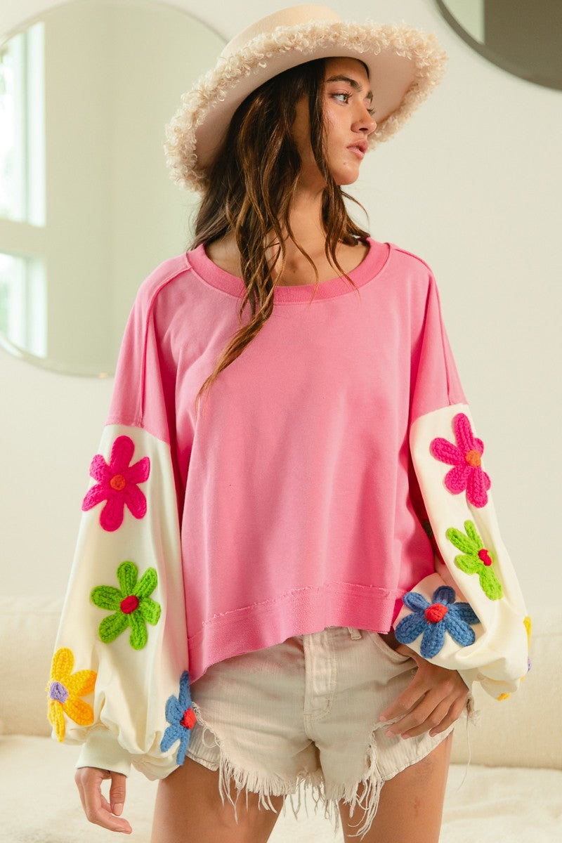 Long sleeve Colorblock Sweatshirts with Daisy Patch