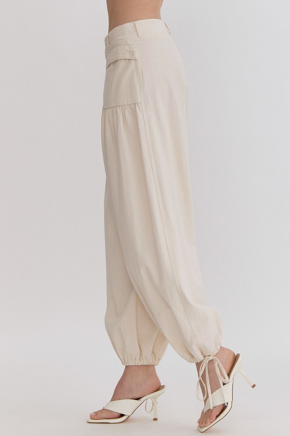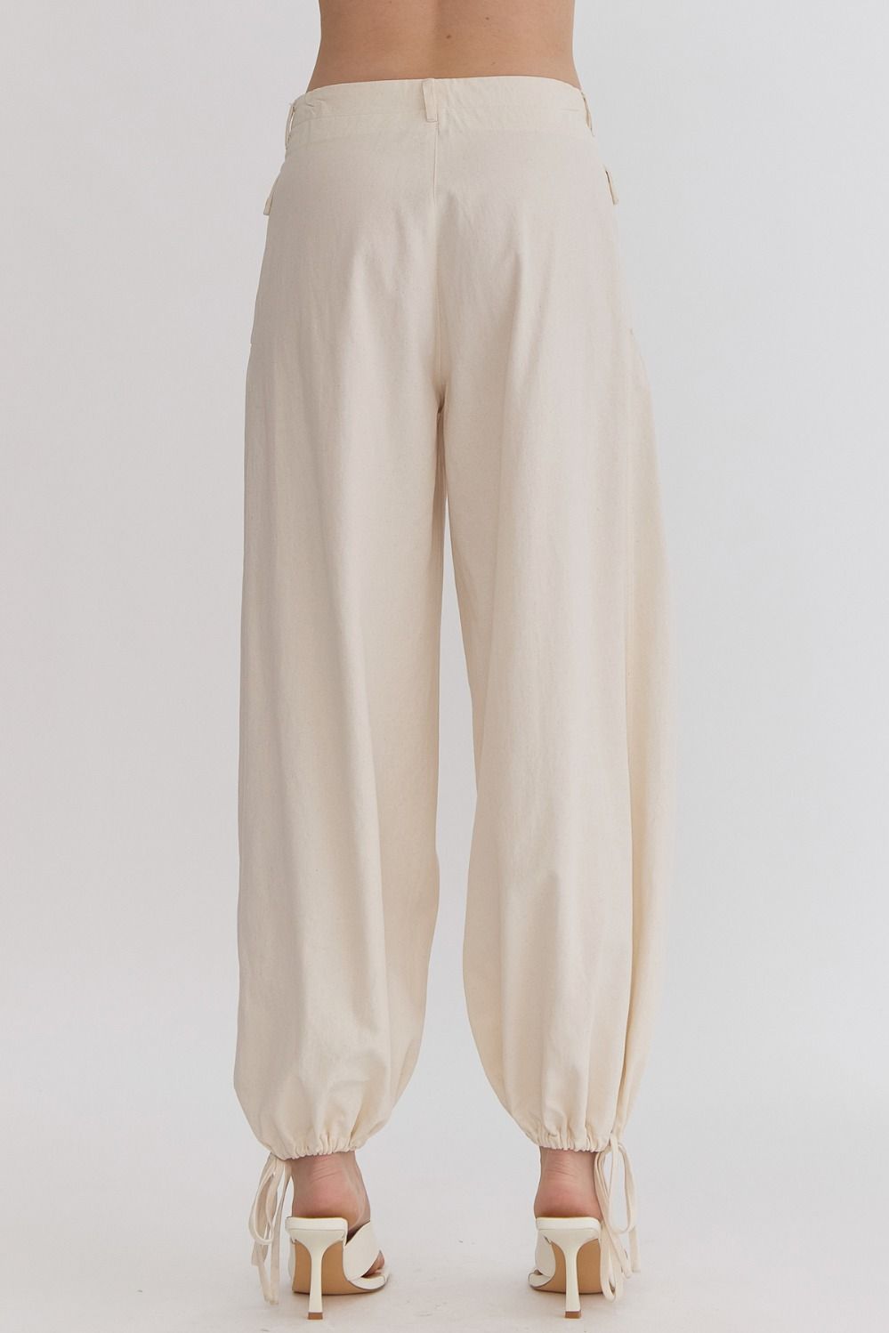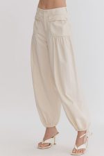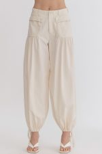 SKU: N/A Category: PANTS Tags: balloon style pants, belt loops, Bottoms, cinch-tie at ankles, lightweight, Mid Rise, mid-rise pants, Pants, Pockets at front, Zipper closure at front