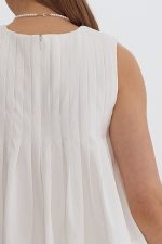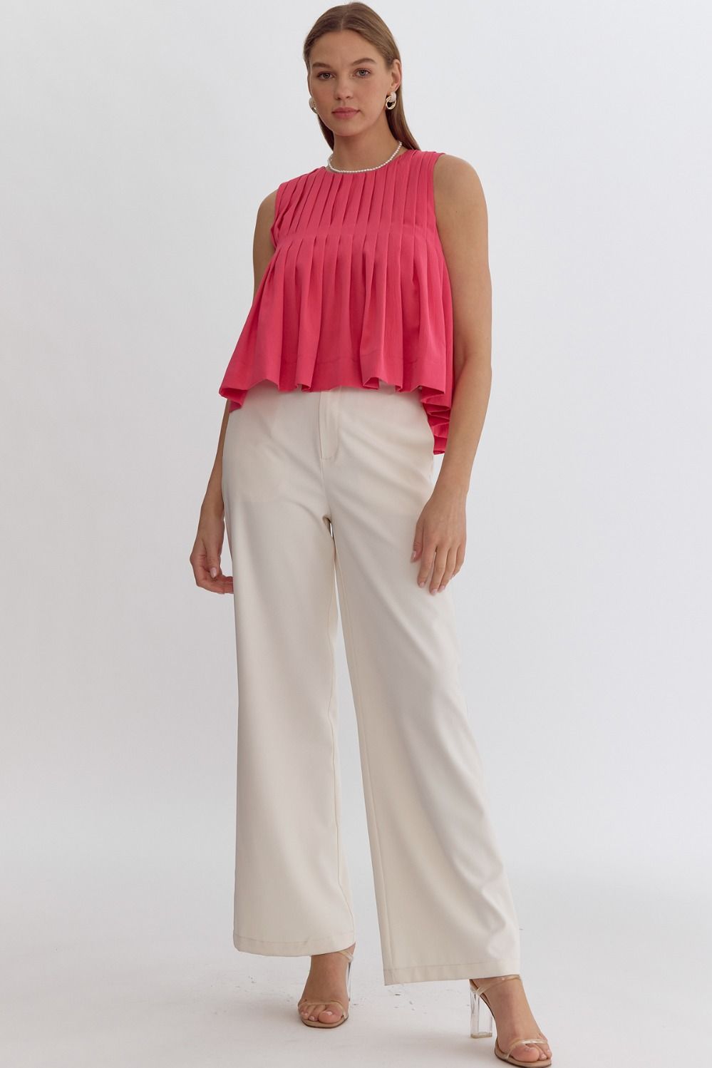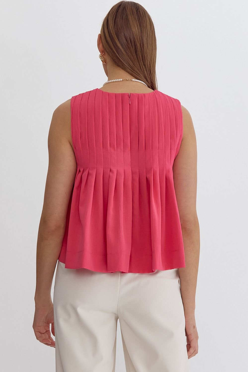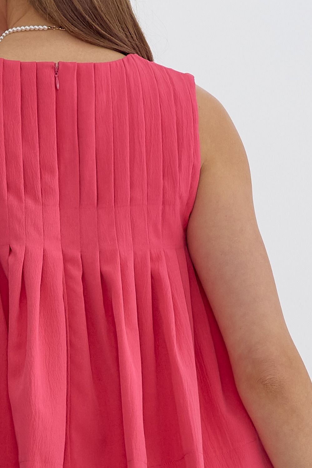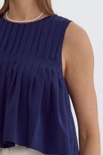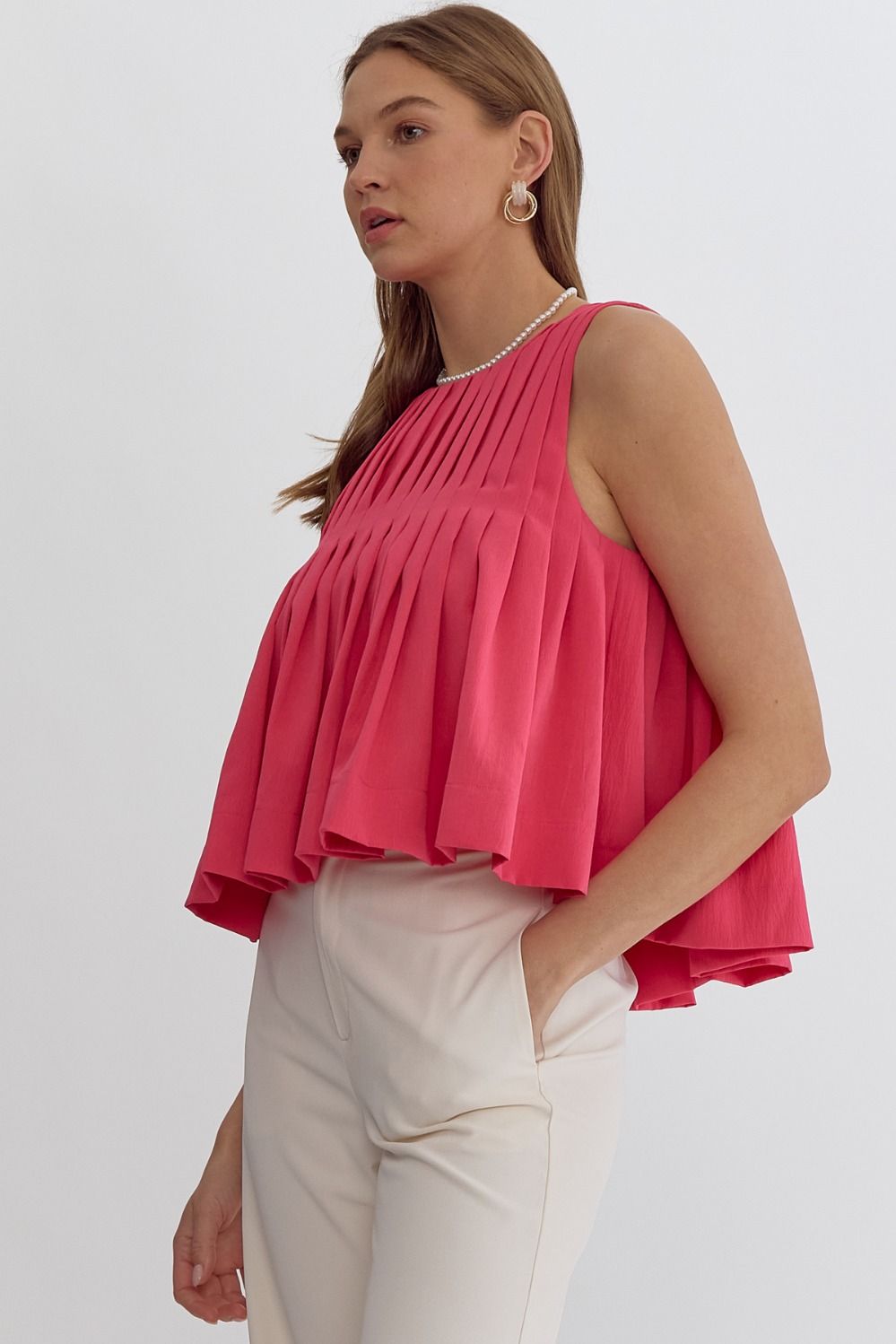 Solid pleated sleeveless crop top featuring ruffled detail.