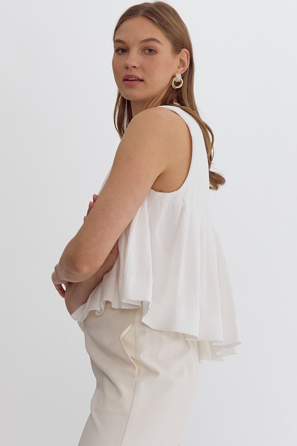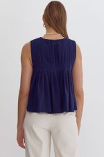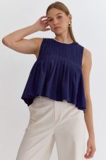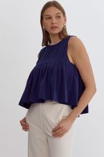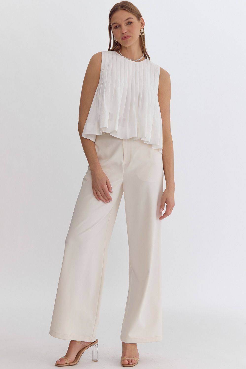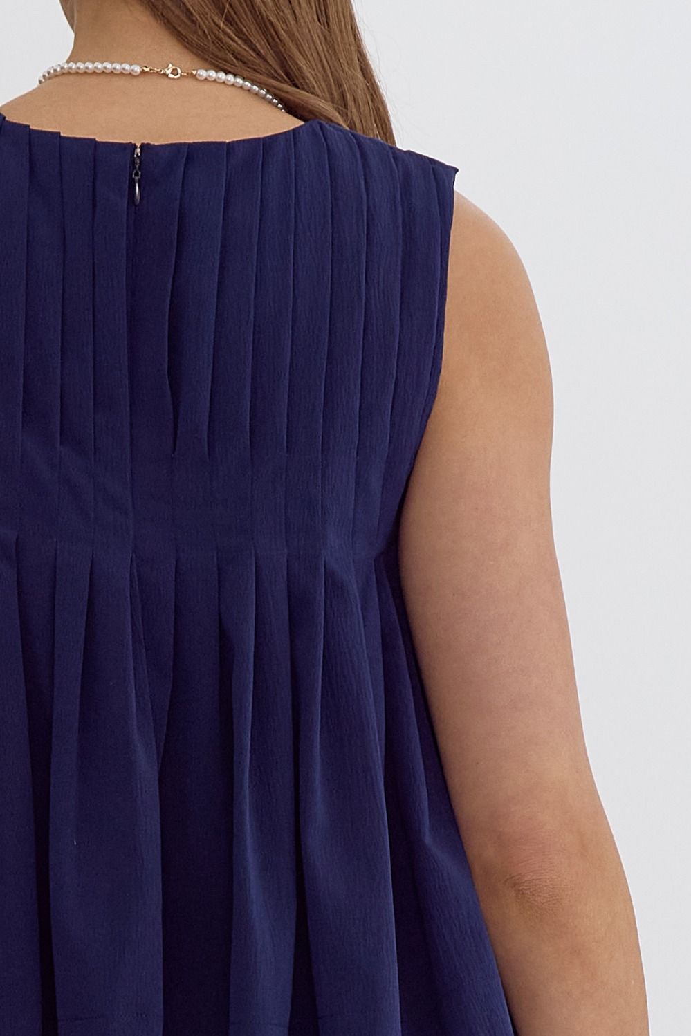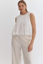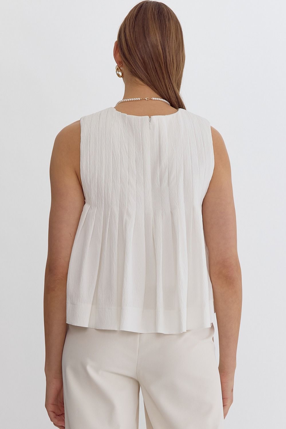 Solid pleated sleeveless crop top featuring ruffled detail.