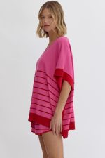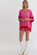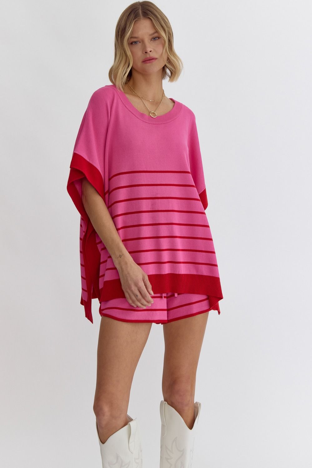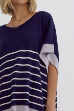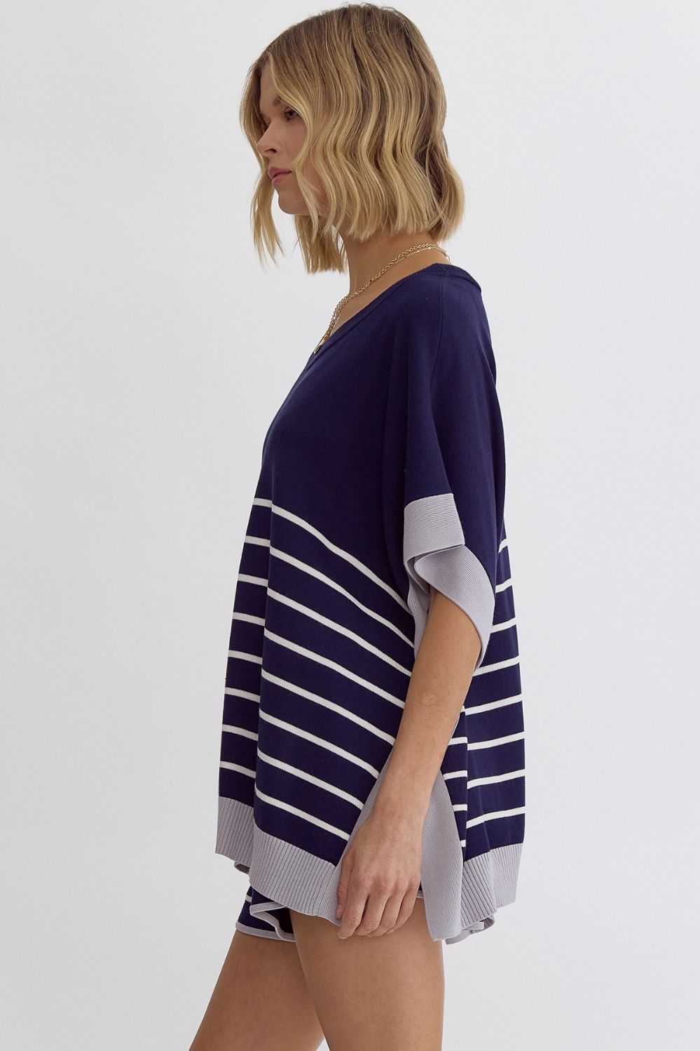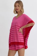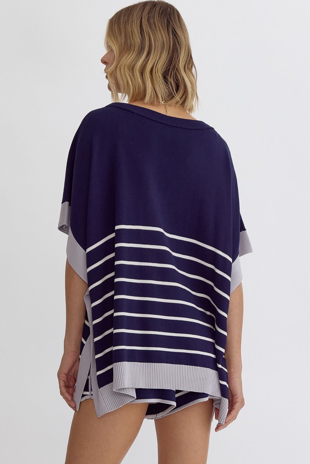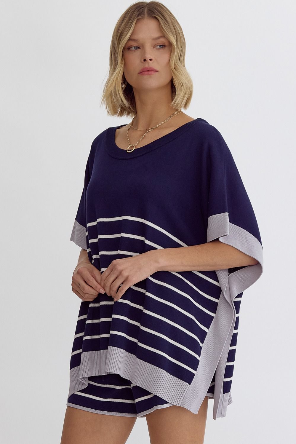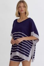 SKU: N/A Category: TOPS Tags: All Tops, knit, knit top, lightweight, Lightweight knit, Lightweight Top, Non-sheer, poncho style top, round neck, round neck top, round neckline, round neckline top, stripe, stripe details, striped, stripes, Tops
