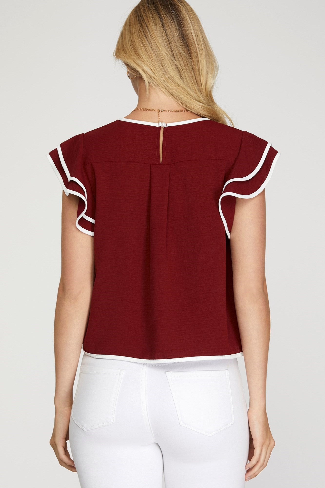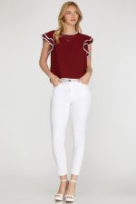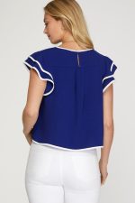 Be the first to review “Ruffle Sleeve Contrast Piping Top” Cancel reply