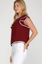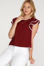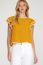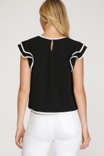 Home TOPS Ruffle Sleeve Contrast Piping Top