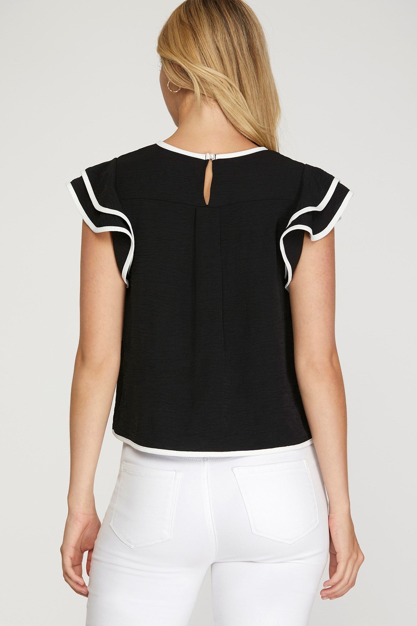 Ruffle Sleeve Contrast Piping Top