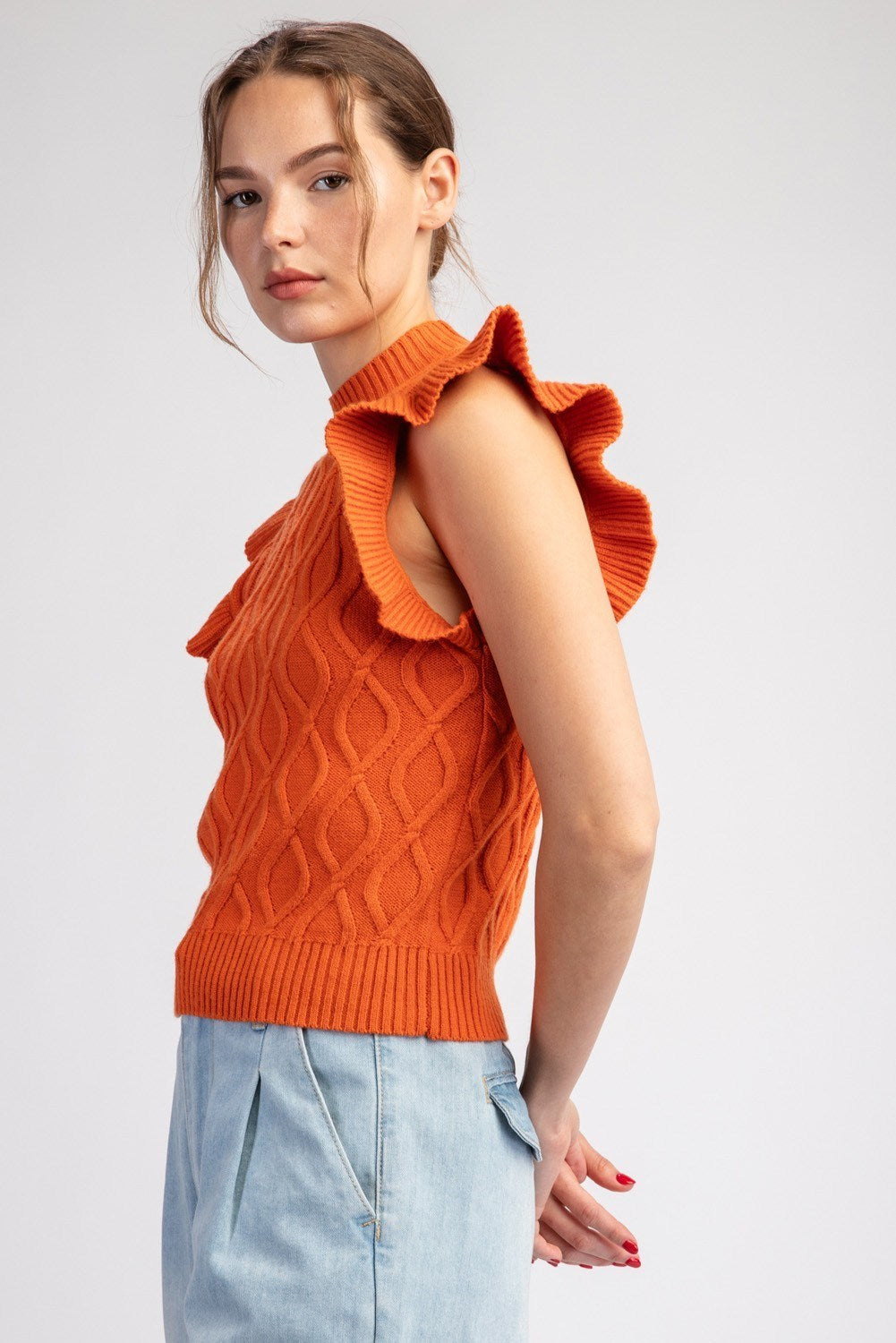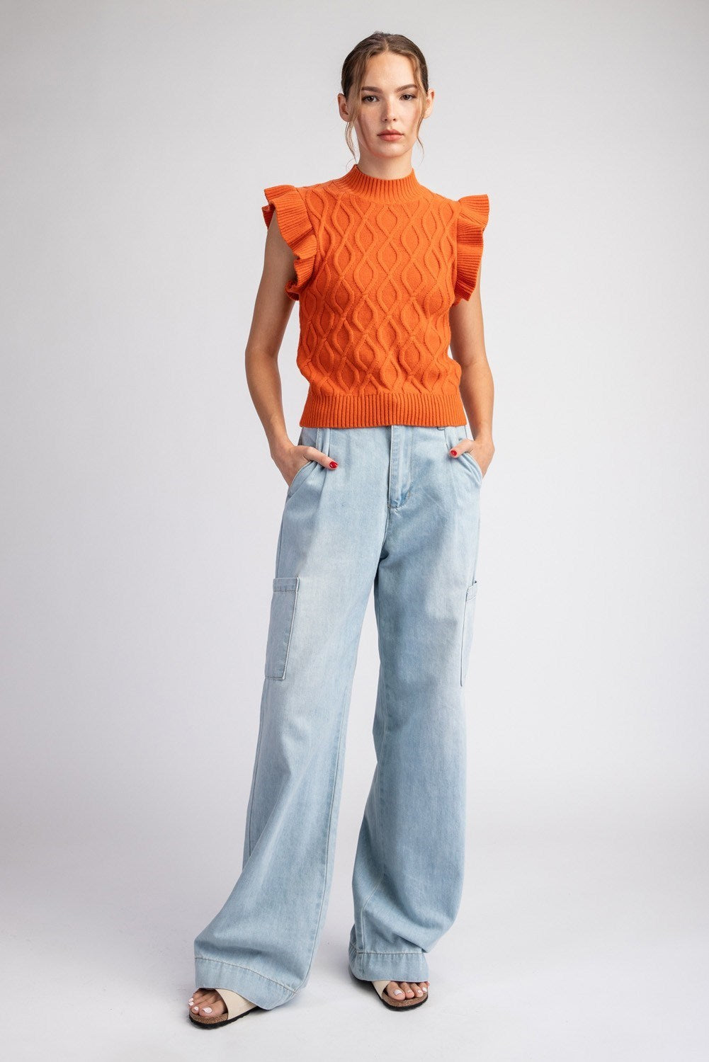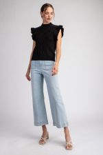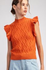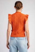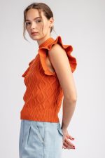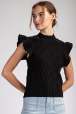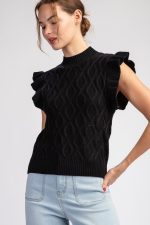 SKU: N/A Category: TOPS Tags: All Tops, fitted, Fitted sweater, fitted top, mock neckline, ribbed mock neckline, ruffle sleeves, short sleeve, short sleeve sweater, short sleeve top, sweater, sweaters, Tops