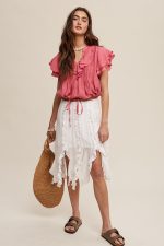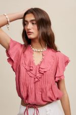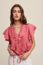 Be the first to review “Ruffled Button Front Tie Waist Blouse Top” Cancel reply