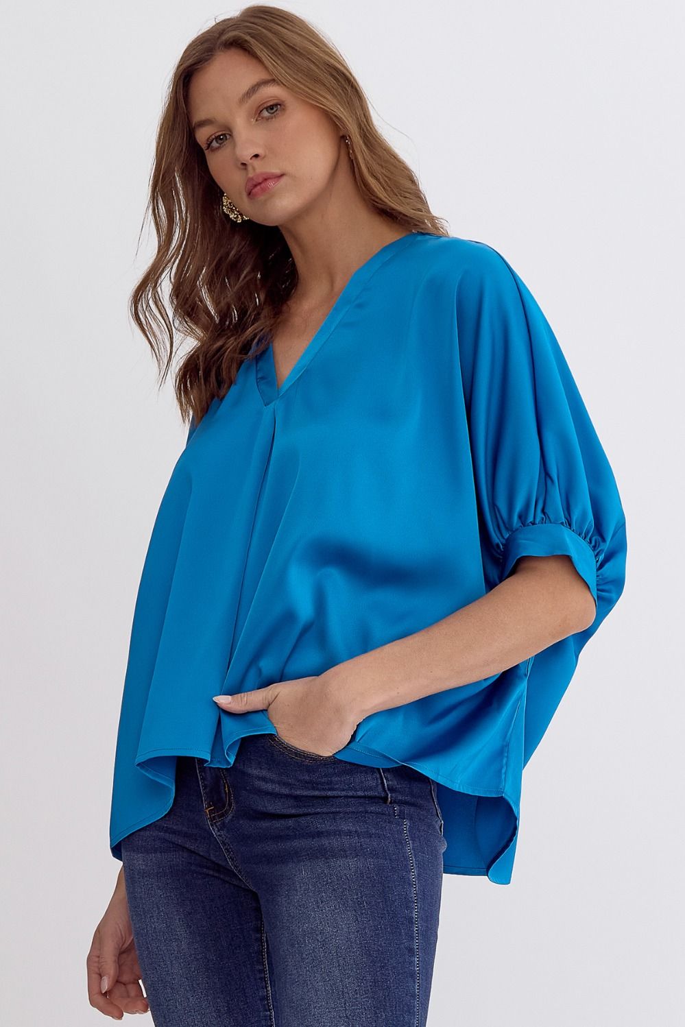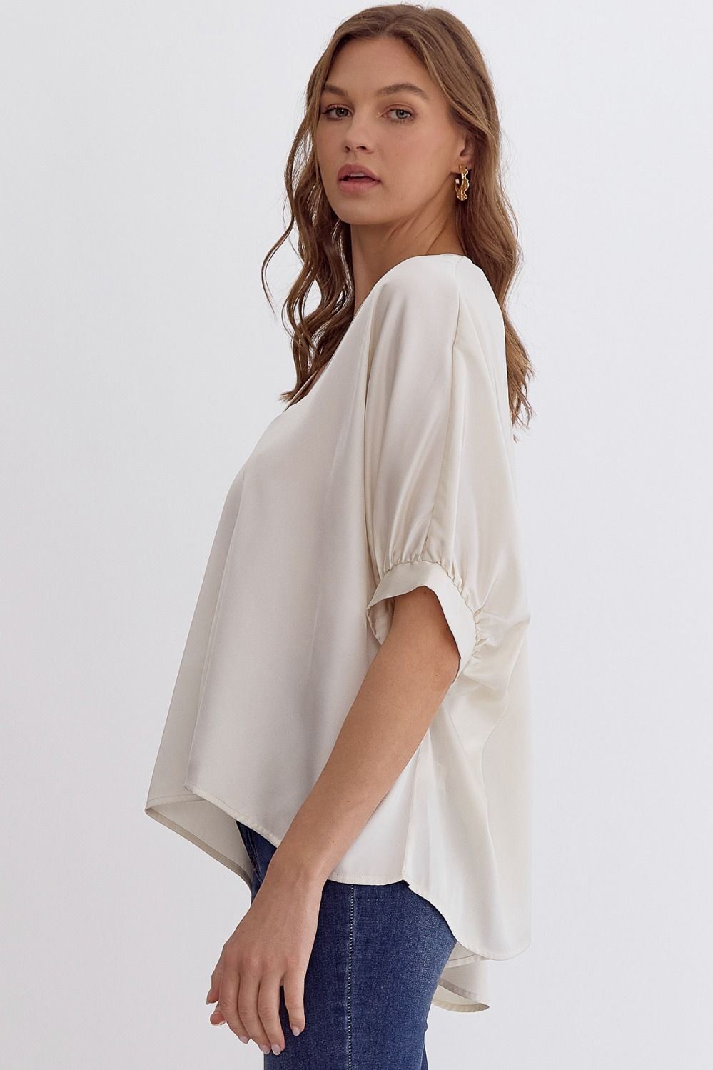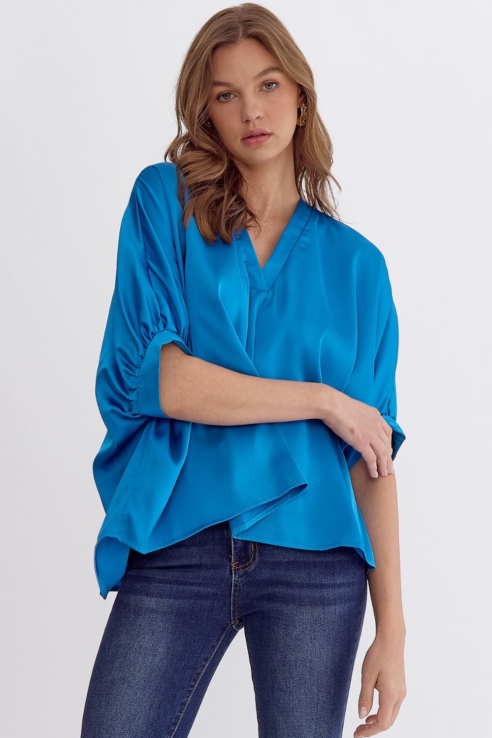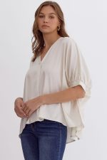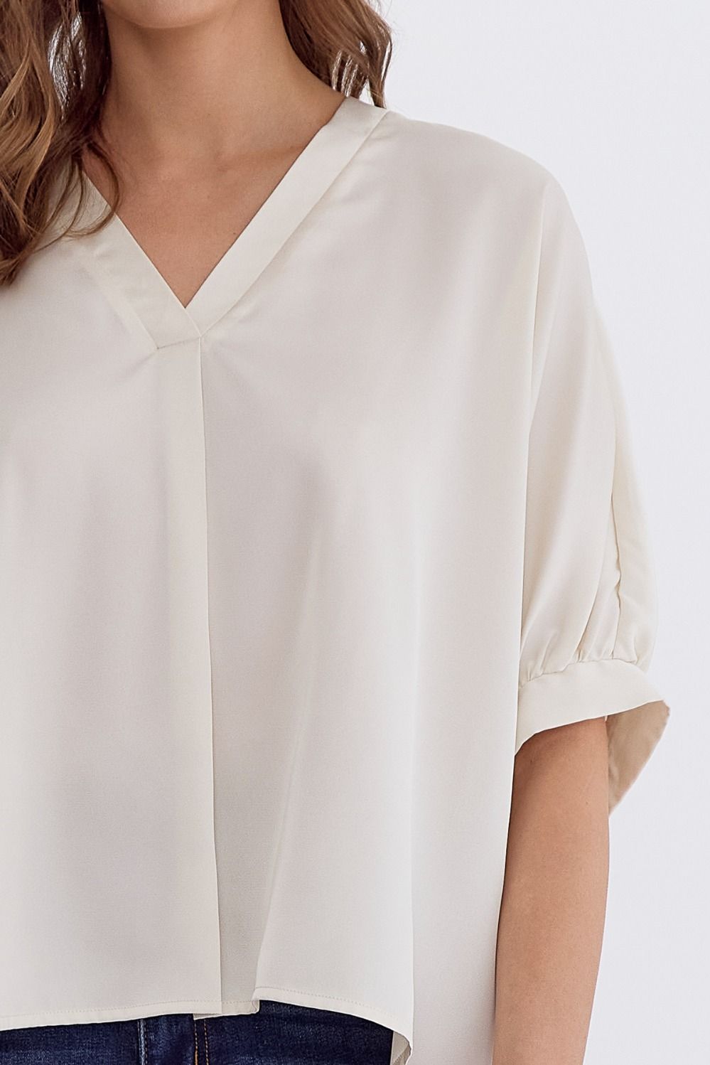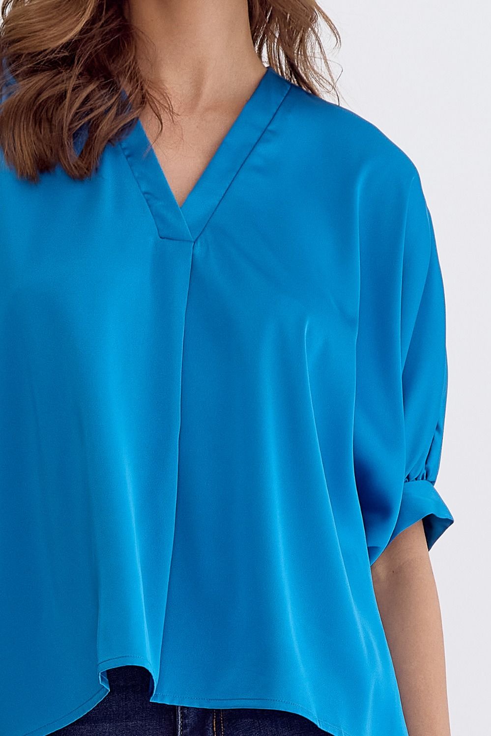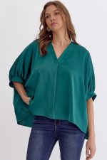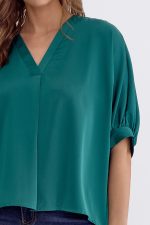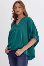 Satin V-Neck 1/2 Sleeve Top