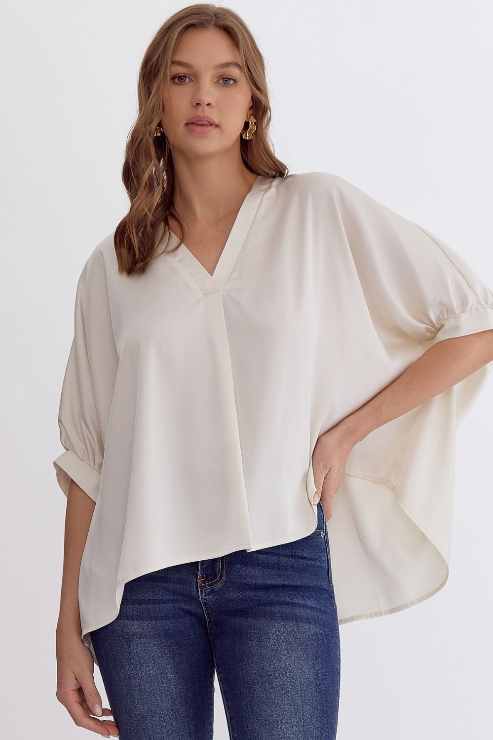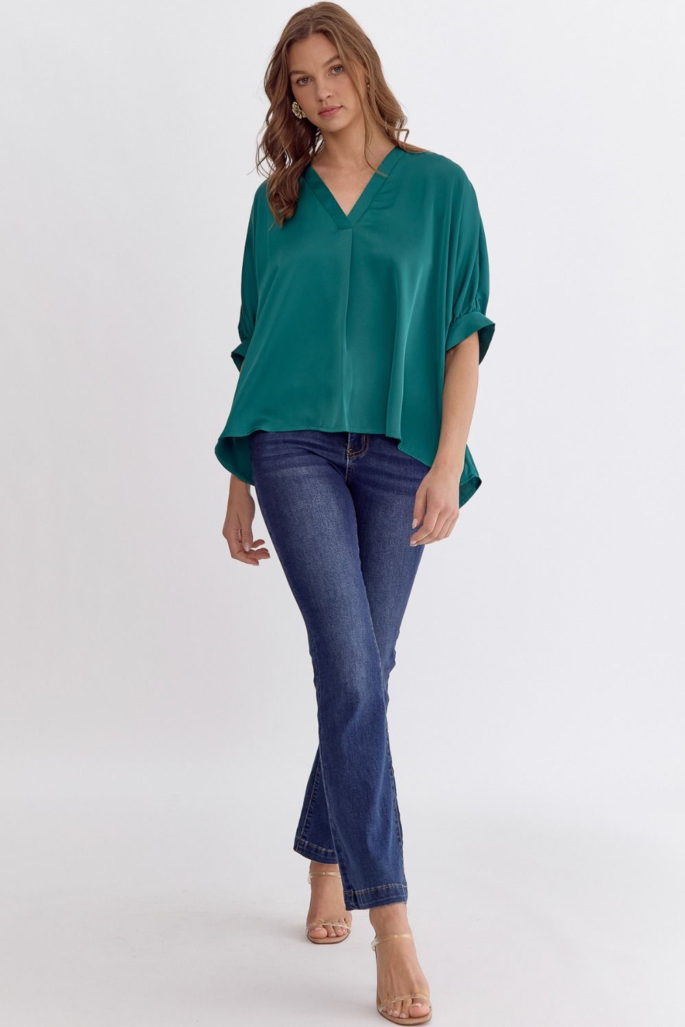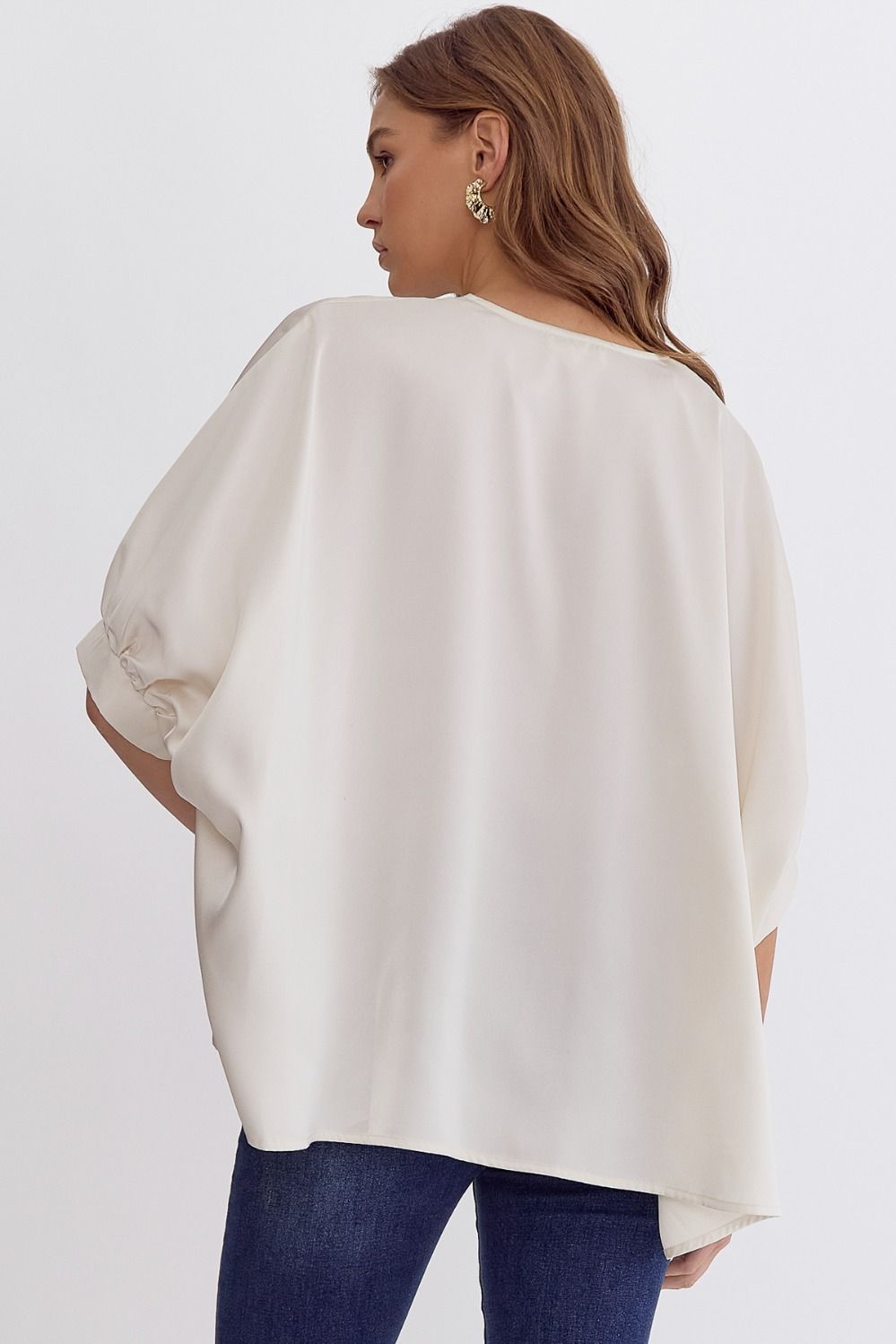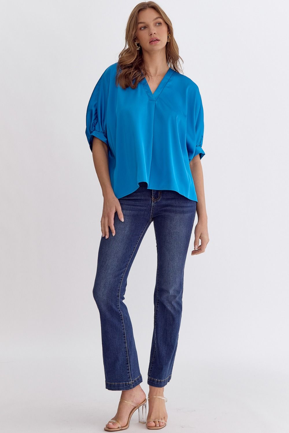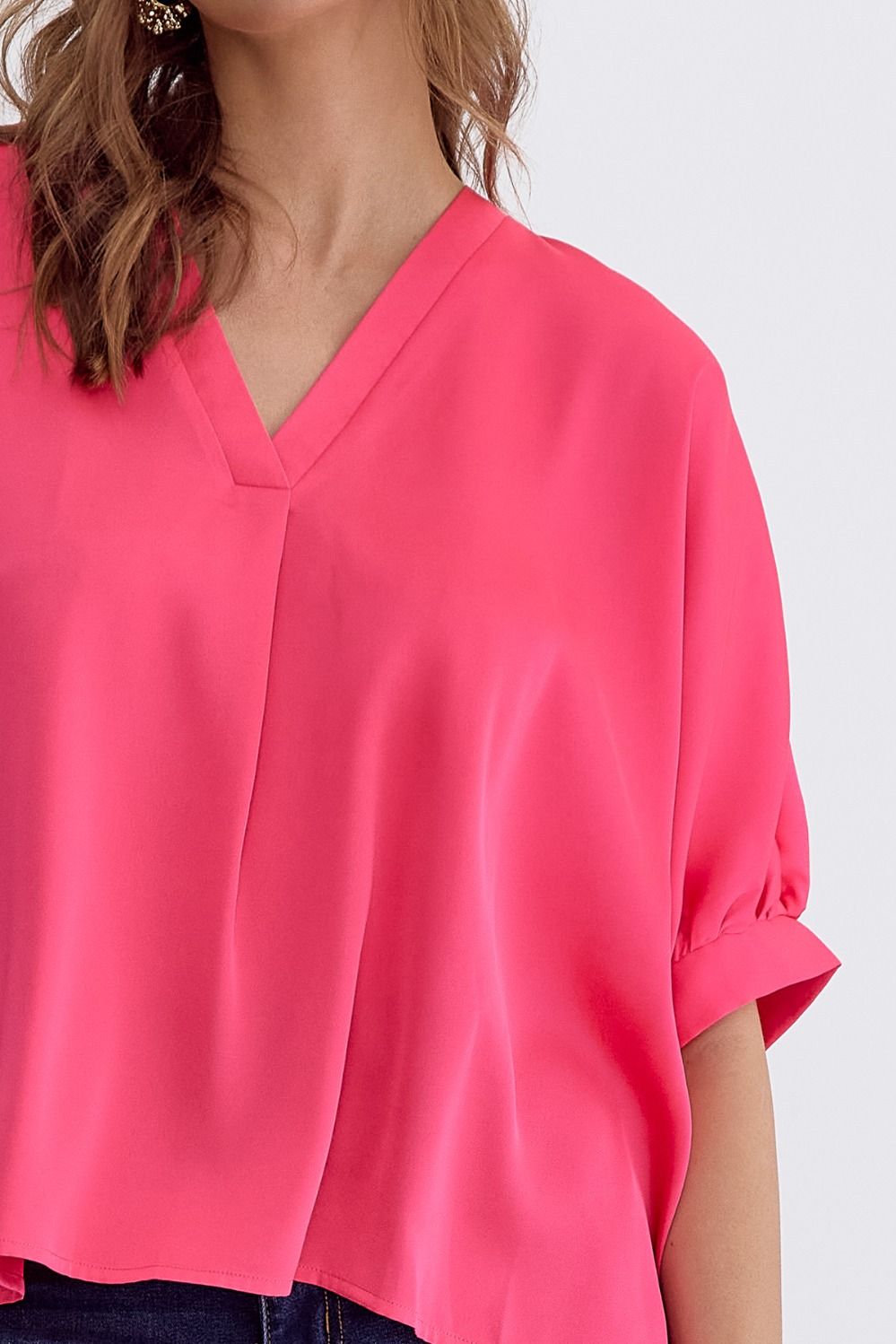 Satin V-Neck 1/2 Sleeve Top