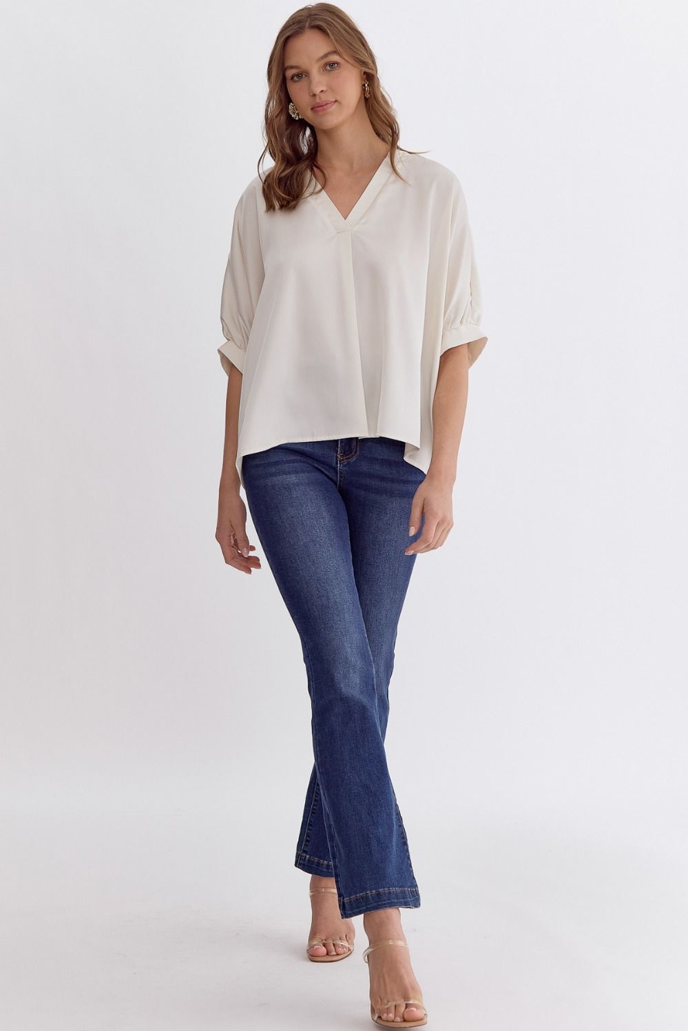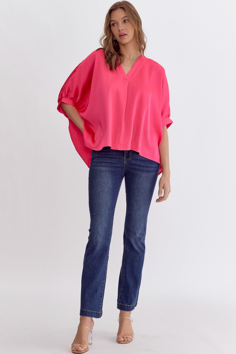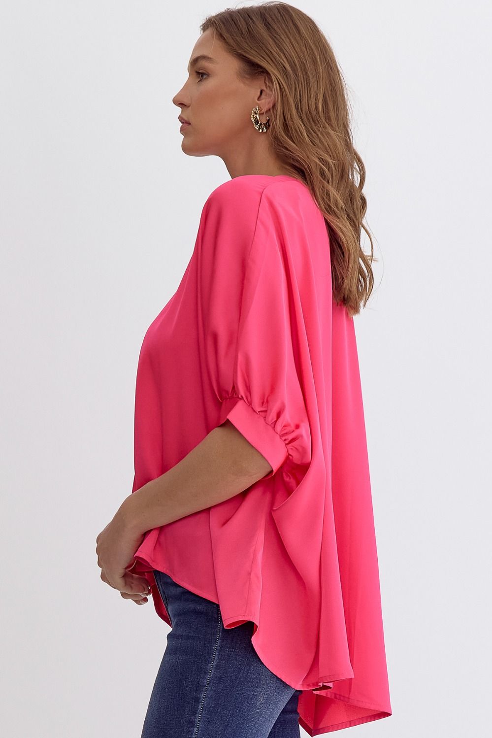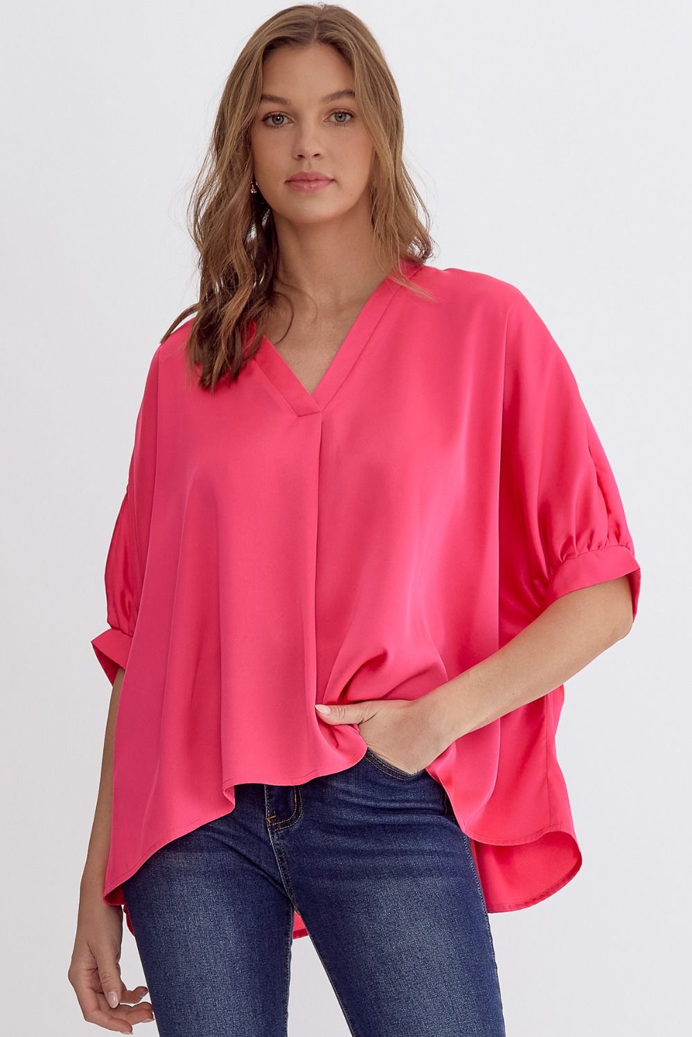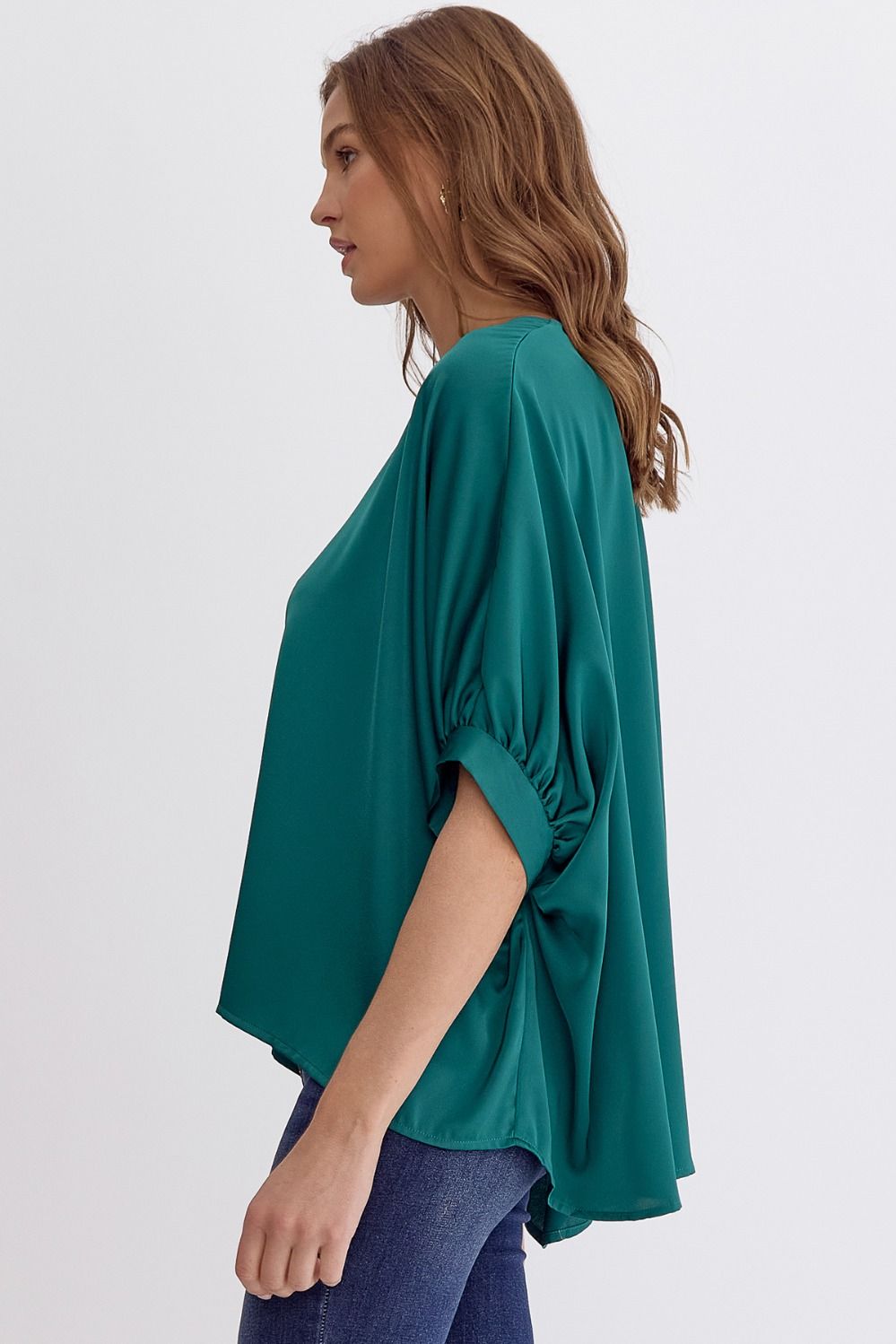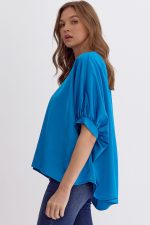 Satin V-Neck 1/2 Sleeve Top