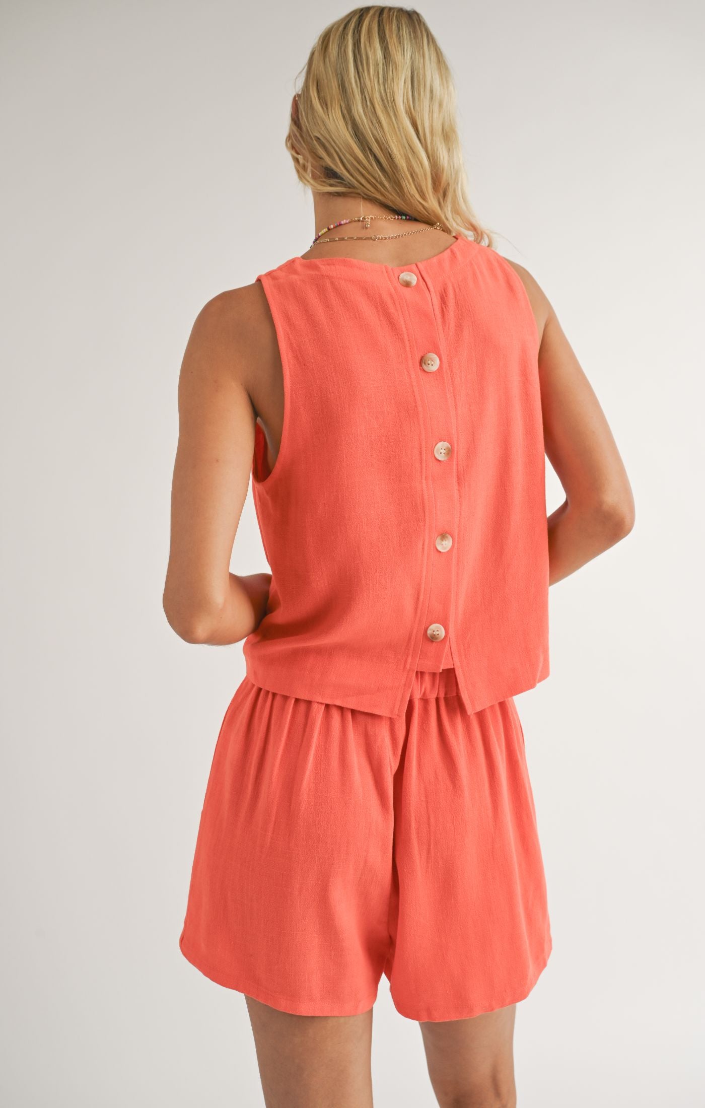 Home TOPS Shoreline Linen Tank with Button Back Detail