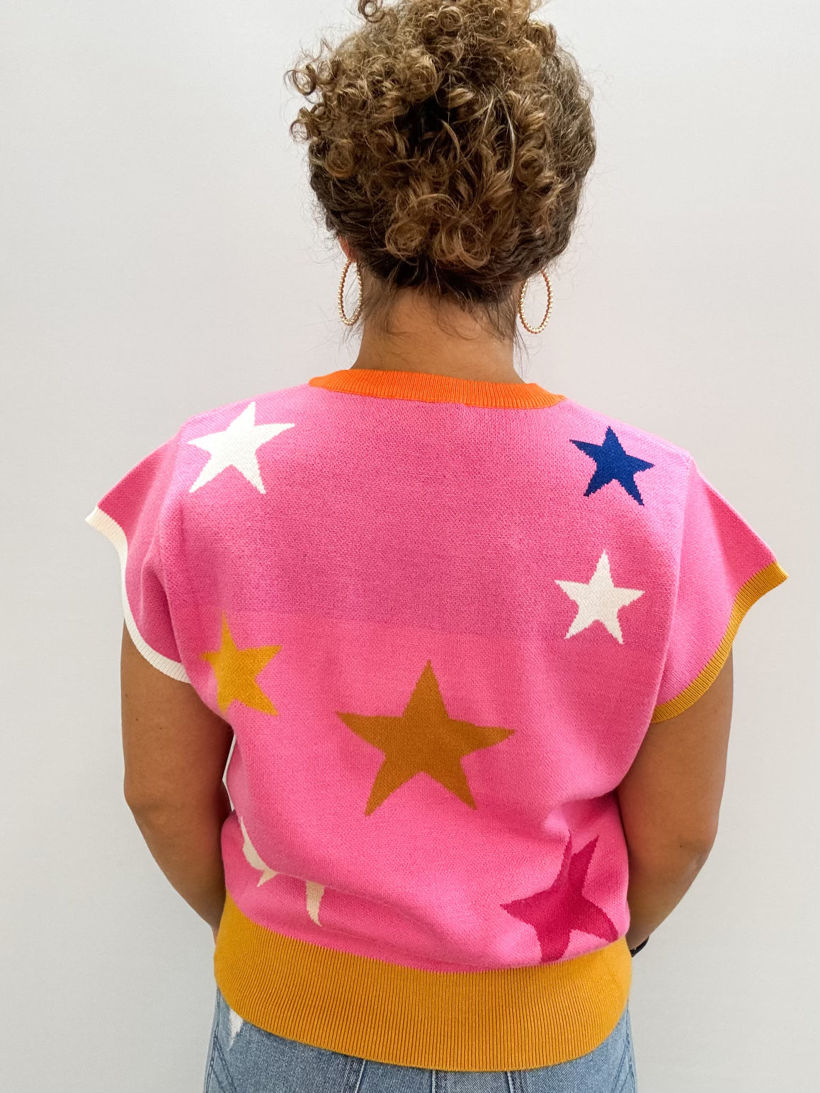 Tags: All Tops, knit, knit top, Lightweight knit, short sleeve, short sleeve top, star, Star Detail, stars, Tops