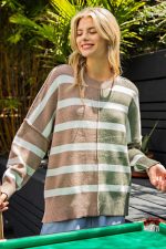 Home TOPS Striped Color Block Long Sleeve Sweater