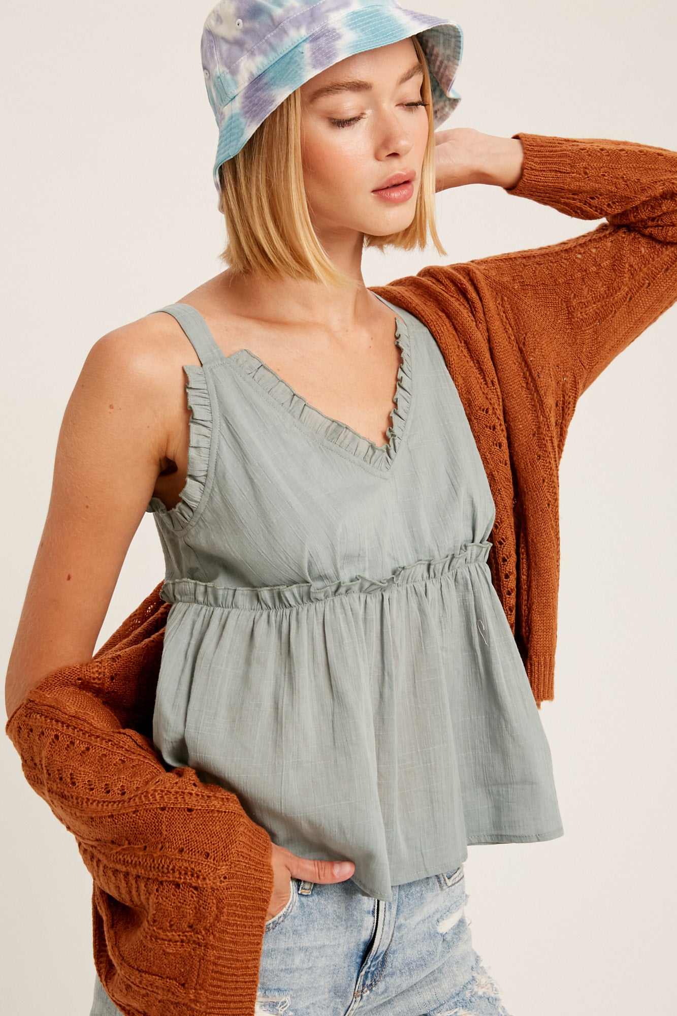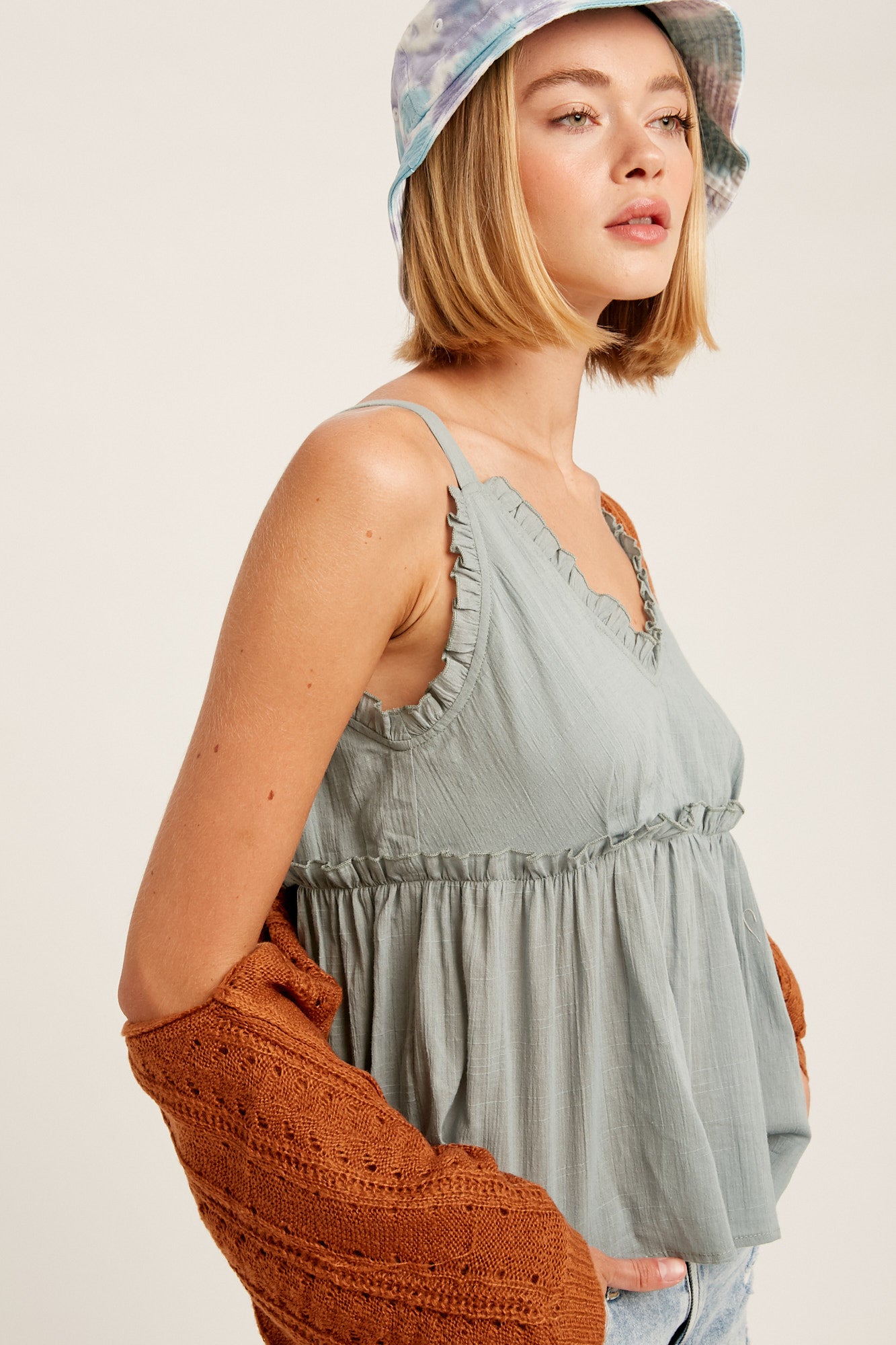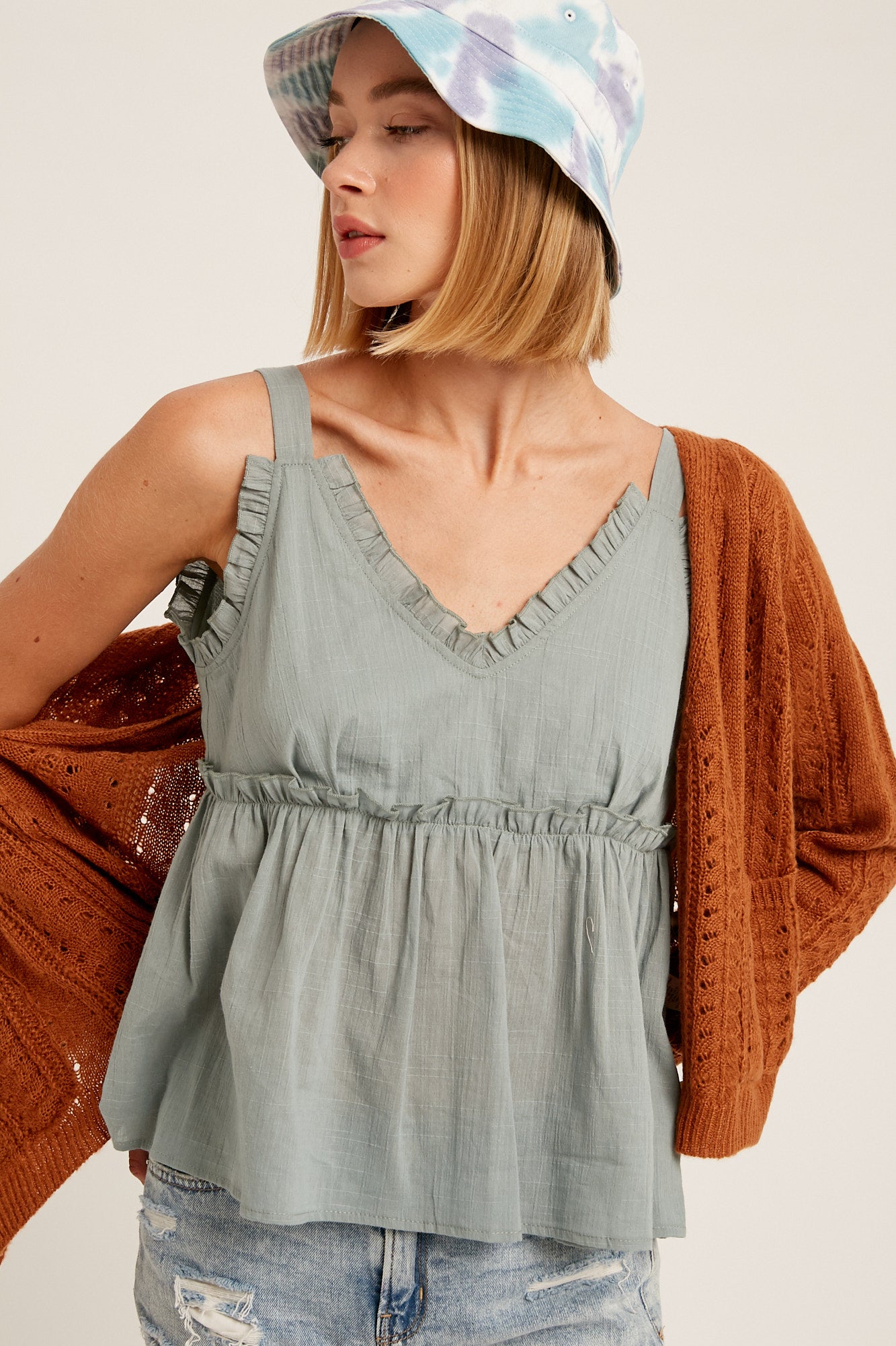 Home TOPS Textured Cotton V-Neck Ruffle Camisole Top