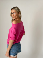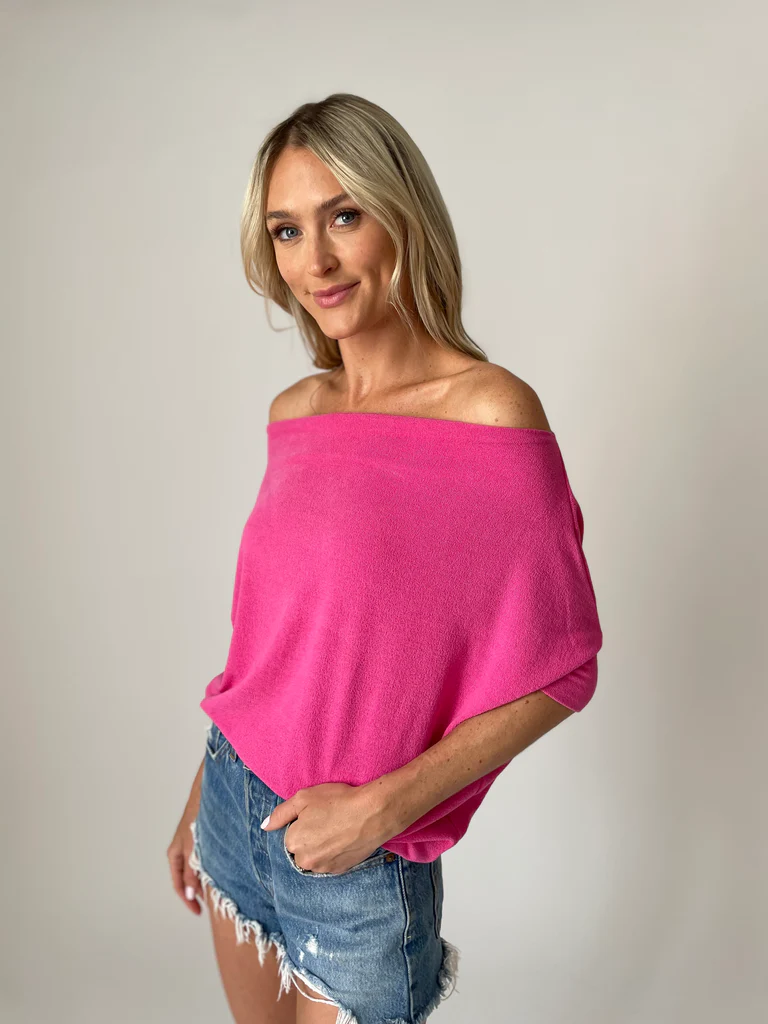 SKU: N/A Category: TOPS Tags: All Tops, crepe hacci fabric, off the shoulder, oversized, oversized fit, oversized top, short sleeve, short sleeve top, style it on or off the shoulder, Tops